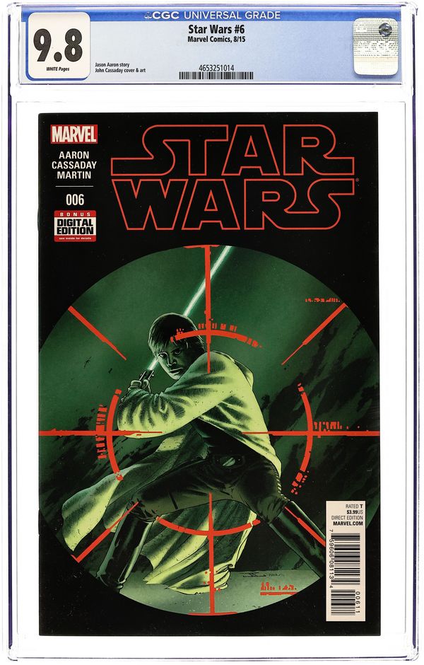 Written by Jason Aaron. Art and Cover by John Cassaday. Luke vs. Boba Fett! Han Solo in hot water! 28 pages, full color. Rated T Star Wars Lucasfilm Ltd. & TM. All rights reserved. Used under authorization. Text and illustrations for Star Wars are 2015 Lucasfilm Ltd. Cover price $3.99.