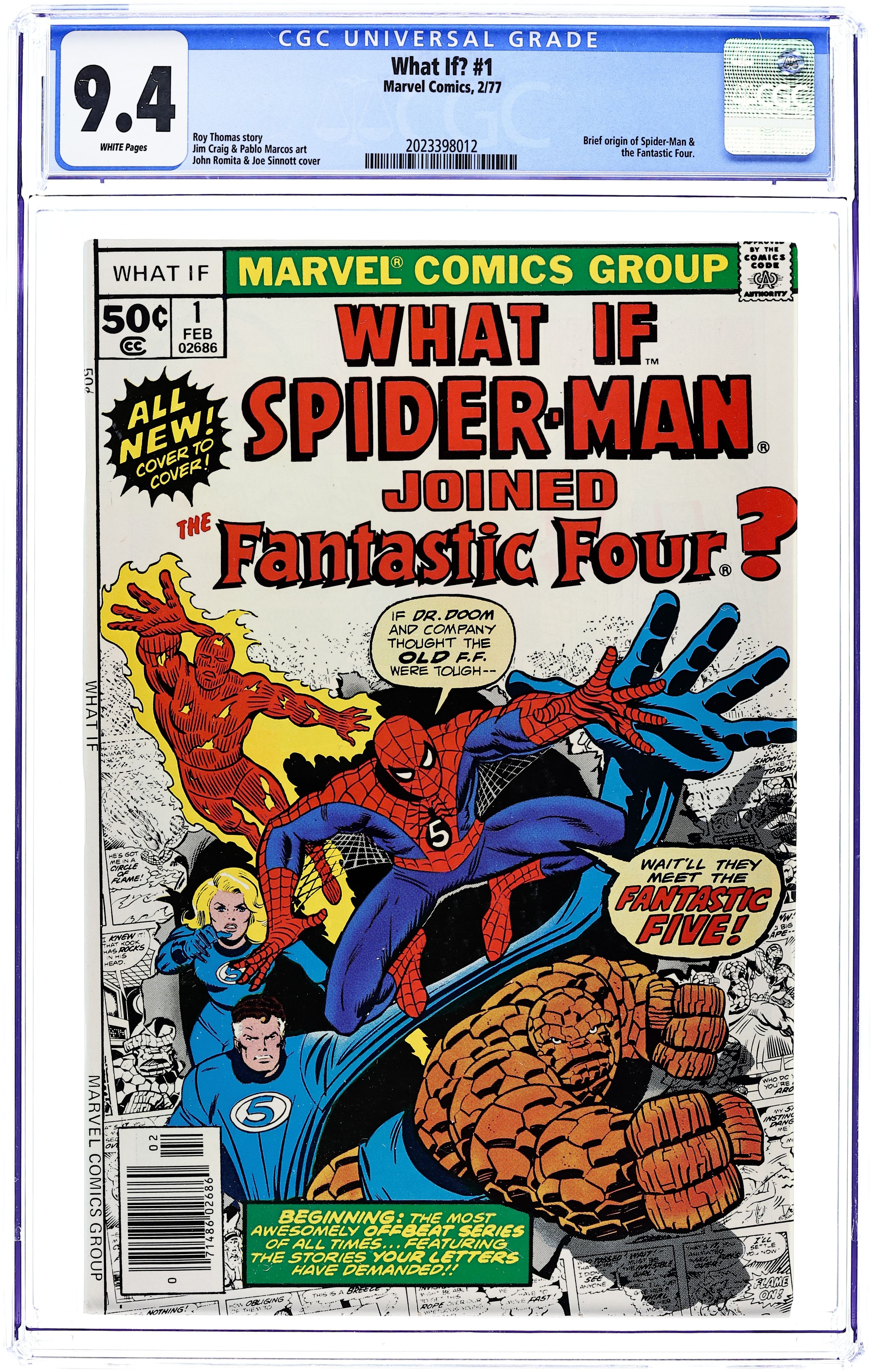 Cover by Ron Wilson and Joe Sinnott. What if Spider-Man Joined the Fantastic Four? Script by Roy Thomas, pencils by Jim Craig, inks by Pablo Marcos; Spider-Man becomes a member of the FF; Cameos by Killraven, the Squadron Supreme, and Deathlok. Hostess Fruit Pie ad with the Hulk, pencils by Dave Cockrum. Ad for Richochet Racers with Spider-Man and Captain America. Roy Thomas discusses how the title came about. 52 pgs. Cover price $0.50.