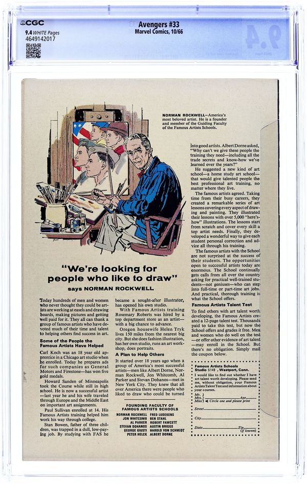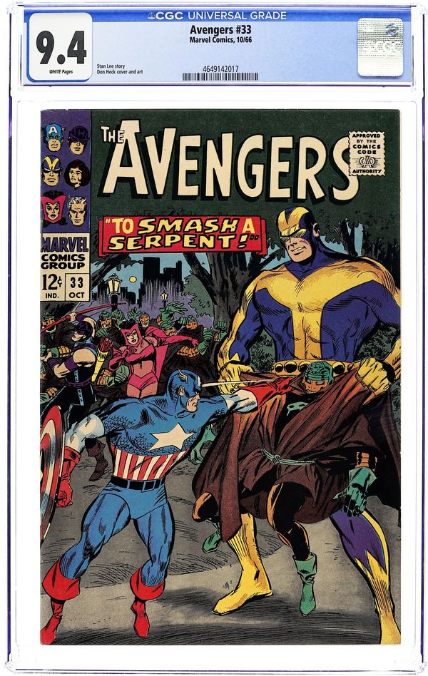 Tags: Marvel Legacy Numbering: Avengers (part 33), AvengersAvengers (1963 1st Series) 33 CGC 9.4