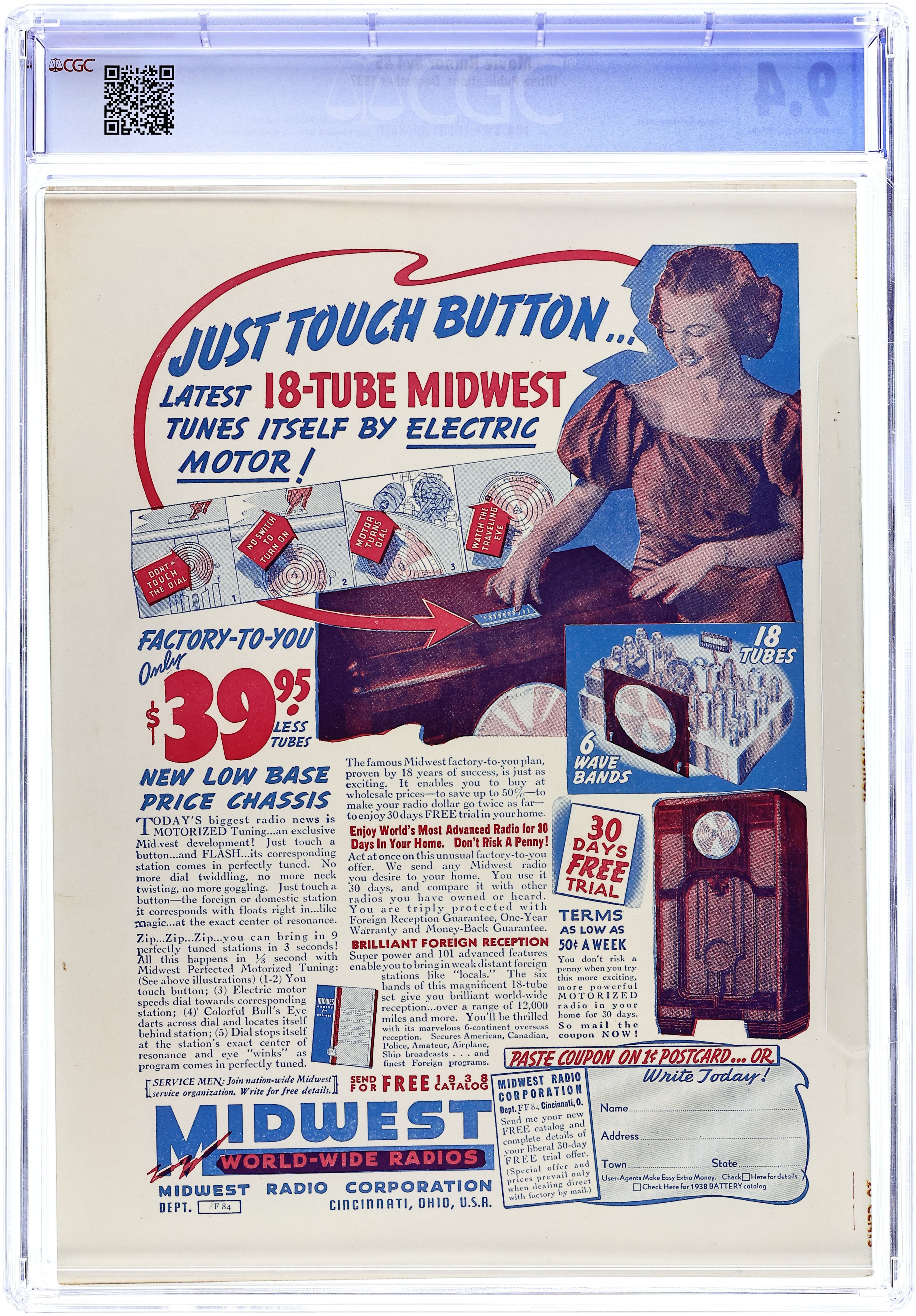 - Detective Comics #1. Back Cover Only. Incomplete.