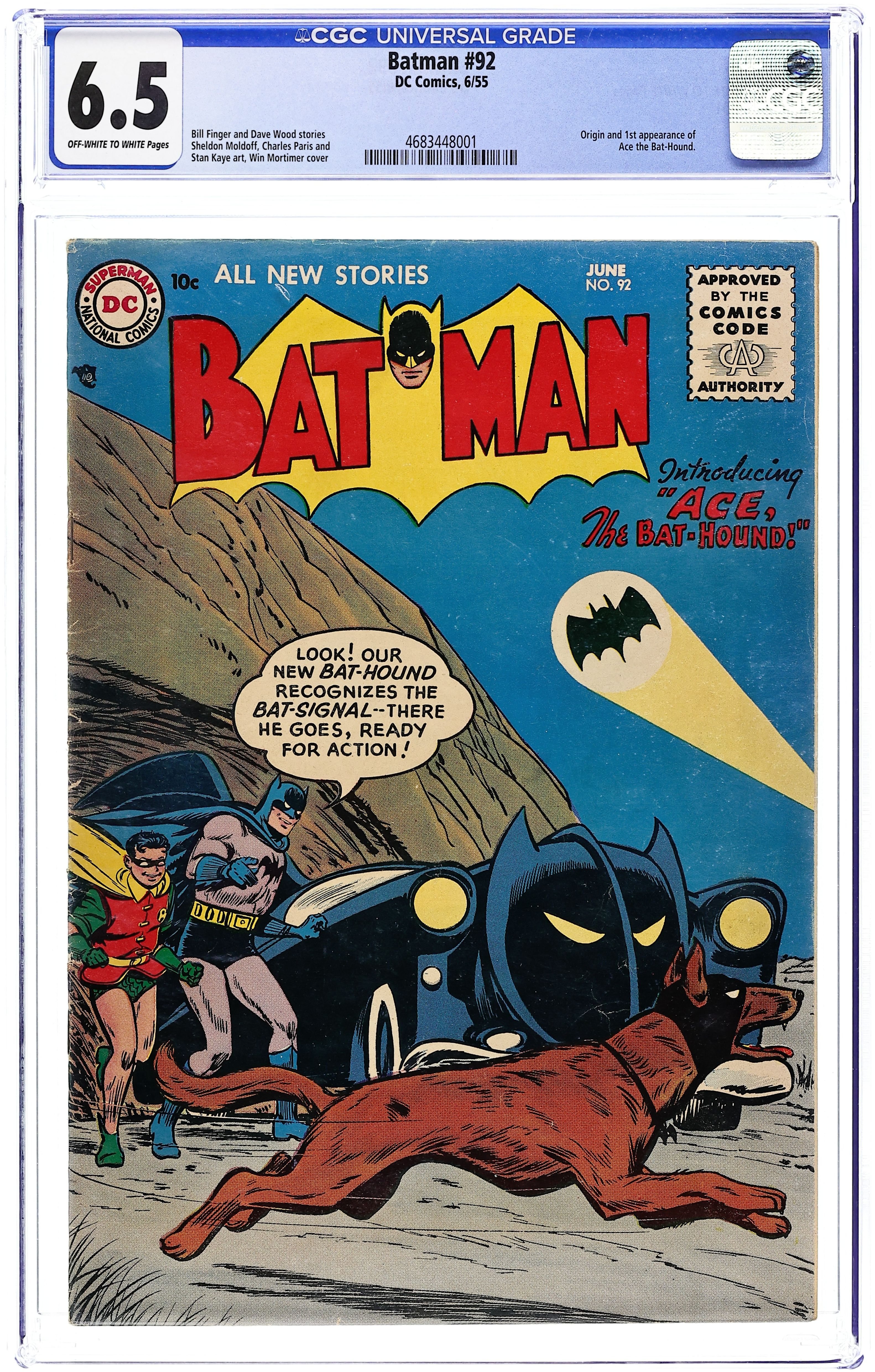 Cover by Win Mortimer. "Fan-Mail of Danger!", script by Bill Finger, pencils by Sheldon Moldoff, inks by Charles Paris; Swamped by fan mail, Batman hires a secretary to handle all of it, who, unwittingly, causes the volume of mail to increase, thus hampering the Caped Crusader's war on crime; A threat from a forger, who has obtained an example of Batman's signature and who attempts to uncover Batman's true identity from it, has to be stopped in his tracks. 2/3-page Casey the Cop story by Henry Boltinoff. "Batman's Guilty Neighbor!", script by Dave Wood, pencils by Sheldon Moldoff, inks by Charles Paris; Bruce's new neighbor, Cal Tremont, is suspected in a series of crimes and it's up to the Caped Crusader to track down the guilty party and clear Cal's name. 2-page Casey the Cop story by Henry Boltinoff. College for Camera Cops article by Jack Miller. -page Shorty story by Henry Boltinoff. First appearance of Ace, the Bat-Hound in "Ace, the Bat-Hound!", script by Bill Finger, pencils by Sheldon Moldoff, inks by Stan Kaye; When Batman and Robin find an injured dog they they take it back to the Batcave; The dog helps them with a few cases and leads them to the crooks who kidnapped his master. There May Be a Career in Health for You! public service announcement with Buzzy, script by Jack Schiff, art by Win Mortimer. 36 Pages, Full Color. Cover price $0.10.