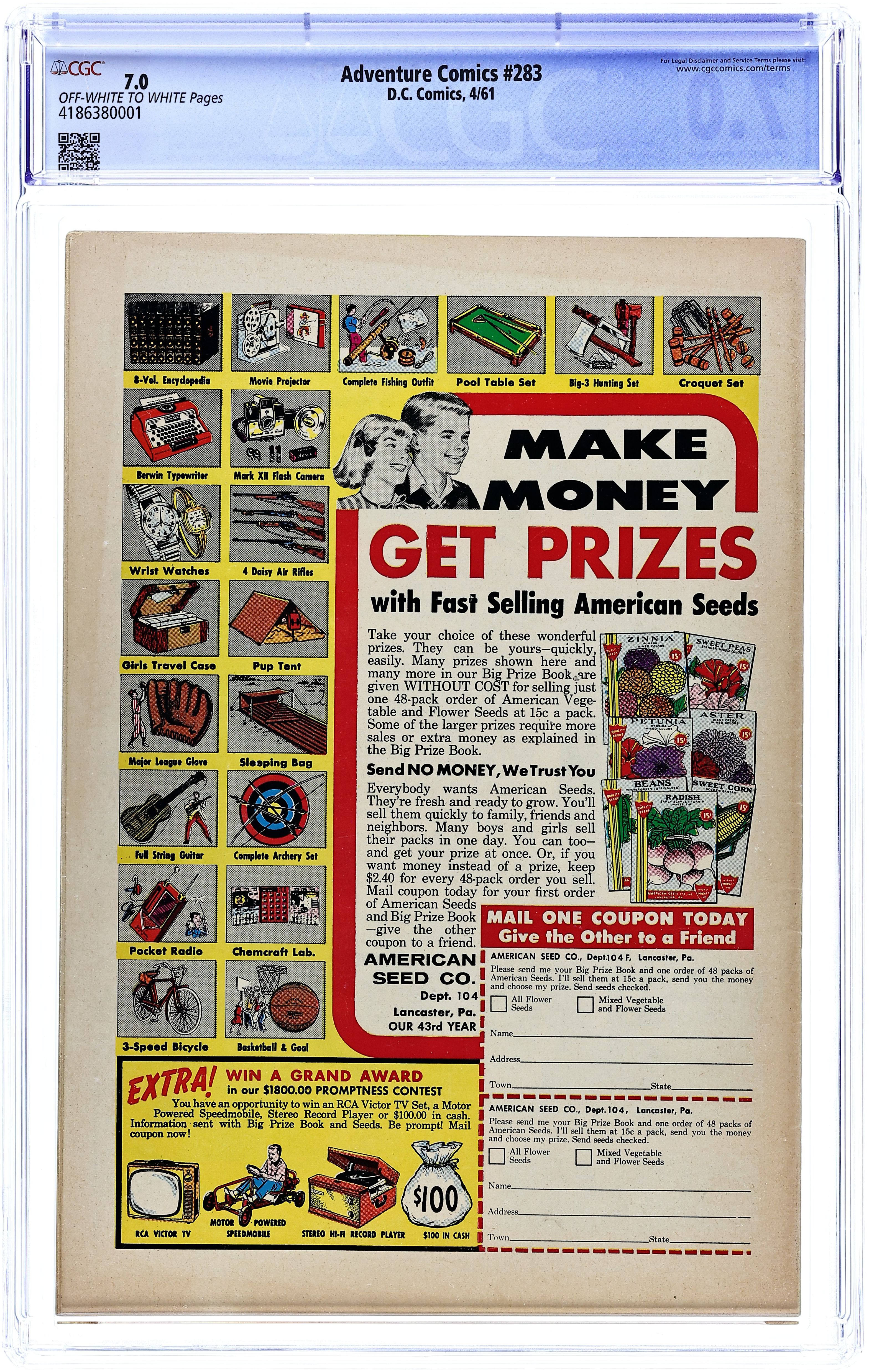 Cover pencils by Curt Swan, inks by George Klein. "The World's Greatest Heroine!, Part 1", script by Jerry Siegel, art by Jim Mooney; Superman reveals Supergirl to the world; President John F. Kennedy appearance; Jackie Kennedy cameo. One-page Little Pete story by Henry Boltinoff. "The Infinite Monster!, Part 2", script by Jerry Siegel, art by Jim Mooney; Supergirl stops a creature from another dimension in her first solo adventure after Superman revealed her to the world. 36 Pages, Full Color. $.12 Cover price $0.12.