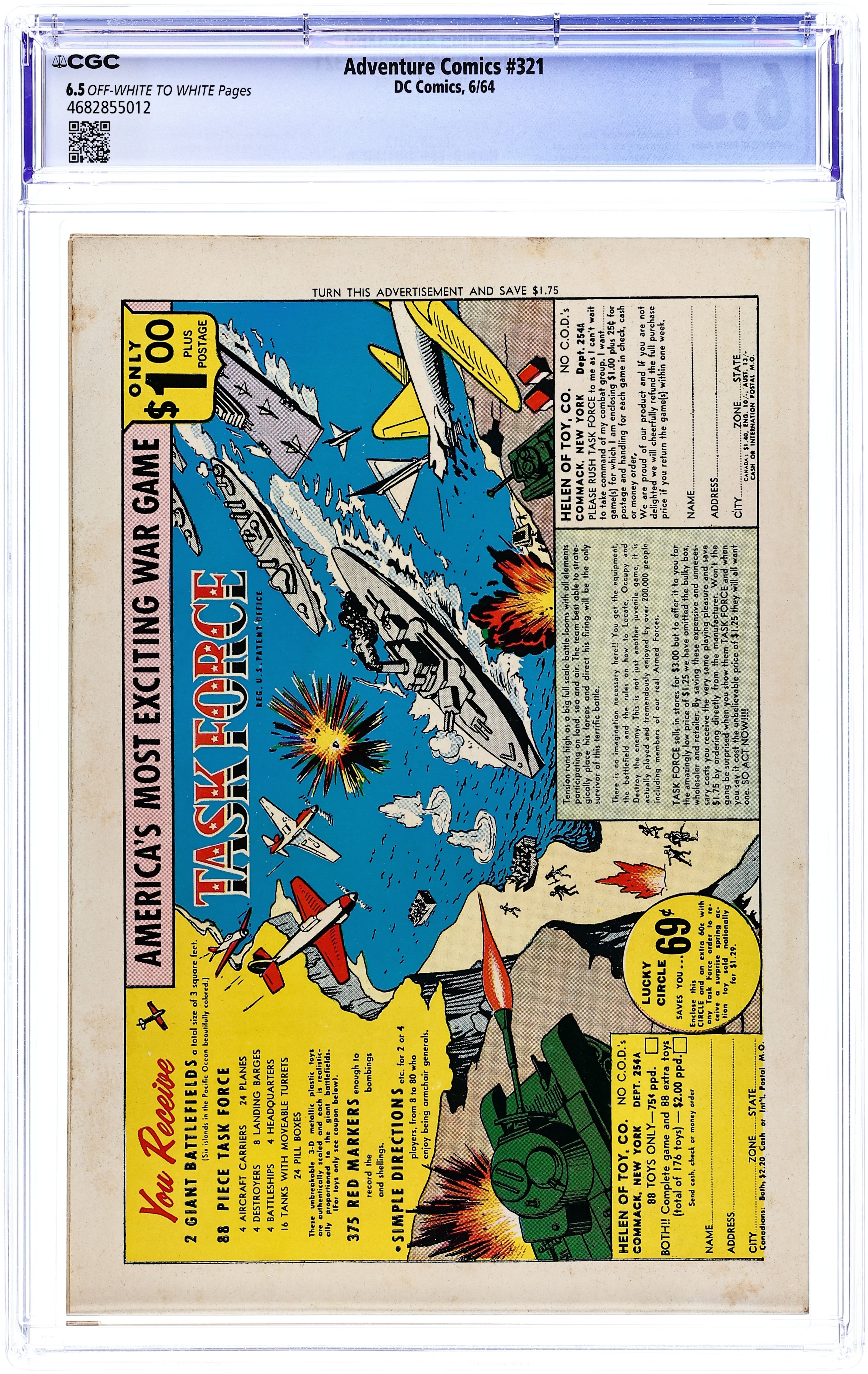 Cover pencils by Curt Swan, inks by George Klein. The Super-Stalag of Space!--Tales of the Legion of Super-Heroes, script by Edmond Hamilton, pencils by Curt Swan, inks by George Klein; The Legionnaires are captured by Nardo and taken to the Super-Stalag of Space. Cap's Hobby Hints--Winning Model Contests activity page by Henry Boltinoff. The Millionaire Pupil!, script by Jerry Siegel, art by Al Plastino; Superboy teaches a spoiled rich kid a lesson. Rocky and Bullwinkle star in a one-page Cheerios ad. 36 Pages, Full Color. Cover price $0.12.