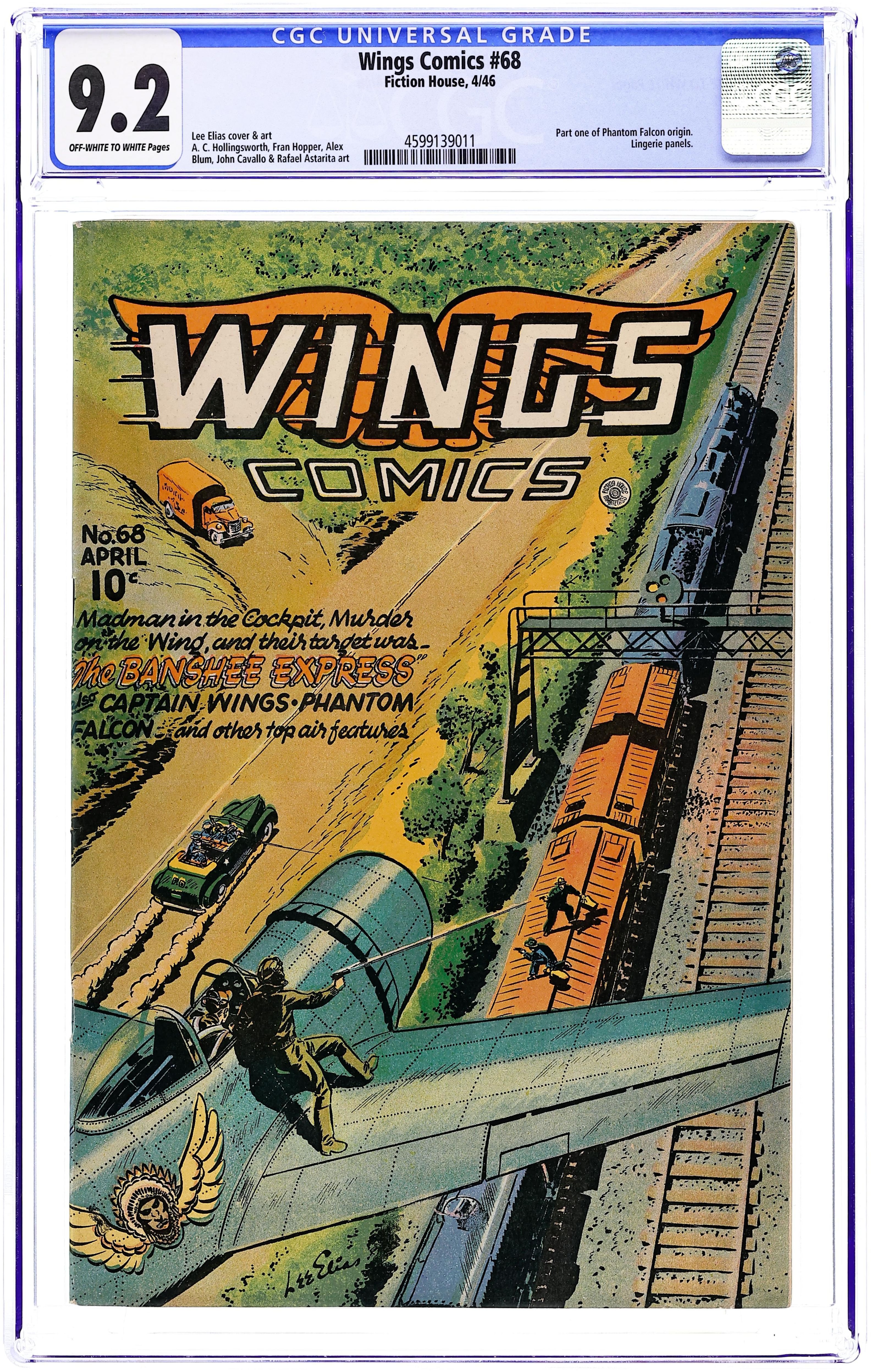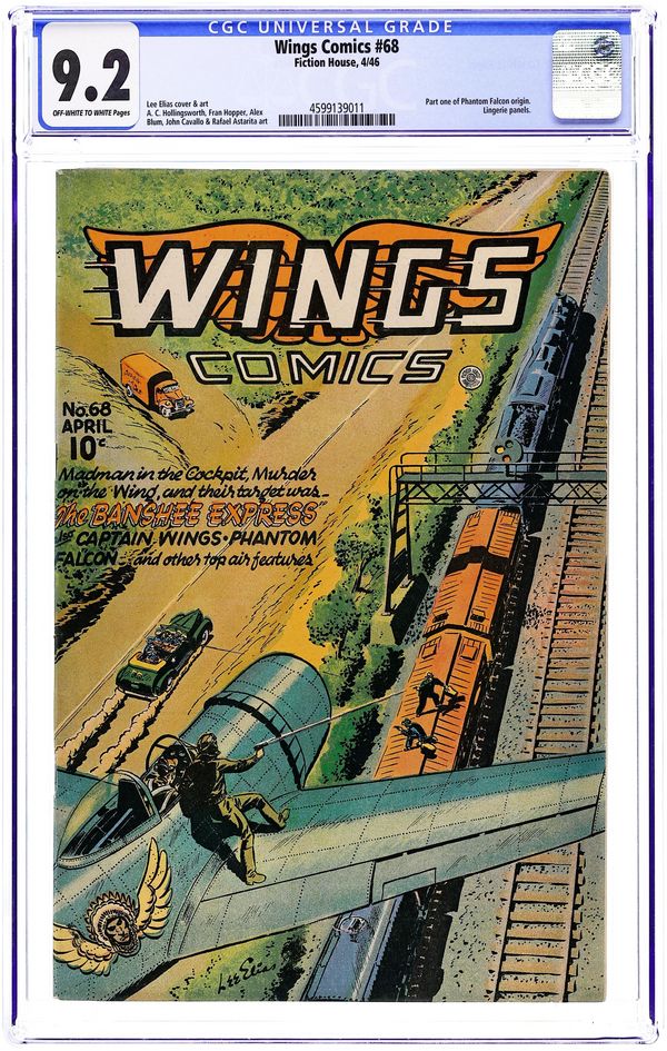 Cover by Lee Elias. Edited by J.F. Byrne. Stories and art by Alvin Hollingsworth, Fran Hopper, Joey Cavallo, Alex Blum, Lee Elias, and Rafael Astarita. Aviation-themed adventure, combat and history tales from pioneering comics publisher Fiction House. Believed dead after an air battle, Clipper Kirk adopts the costumed identity of the Phantom Falcon to bring his would-be assassins to justice; Agent Jane Martin seeks black-market thieves stealing American equipment in Tokyo; Greasemonkey Griffin builds his own bizarre plane out of US Army surplus equipment. Suicide Smith; Jane Martin; Clipper Kirk; Greasemonkey Griffin; The Team Behind the Pilot; Captain Wings; Ghost Patrol. 52 pages, Full Color. Cover price $0.10.