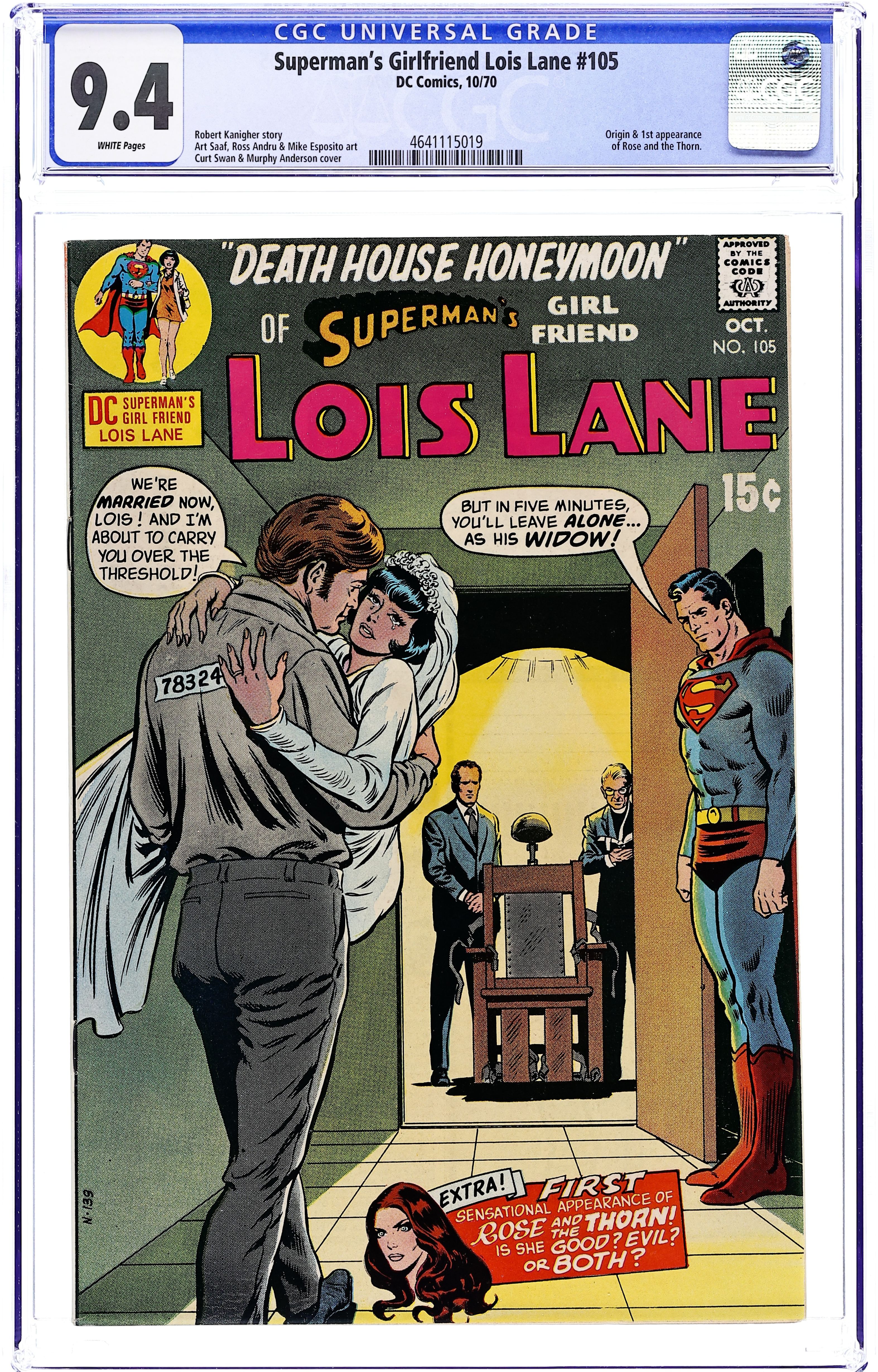 1st appearance and origin of Rose and Thorn. Cover pencils by Curt Swan, inks by Murphy Anderson. Death House Honeymoon!, script by Robert Kanigher, pencils by Art Saaf and Ross Andru, inks by Mike Esposito; Johnny Adonis, a murderer on death row, asks Lois to marry him as his last request. Night of the Thorn, script by Robert Kanigher, pencils by Ross Andru, inks by Mike Esposito; Rose Forrest becomes the Thorn to avenge her father's murder by The 100. 36 Pages, Full Color. Cover price $0.15.