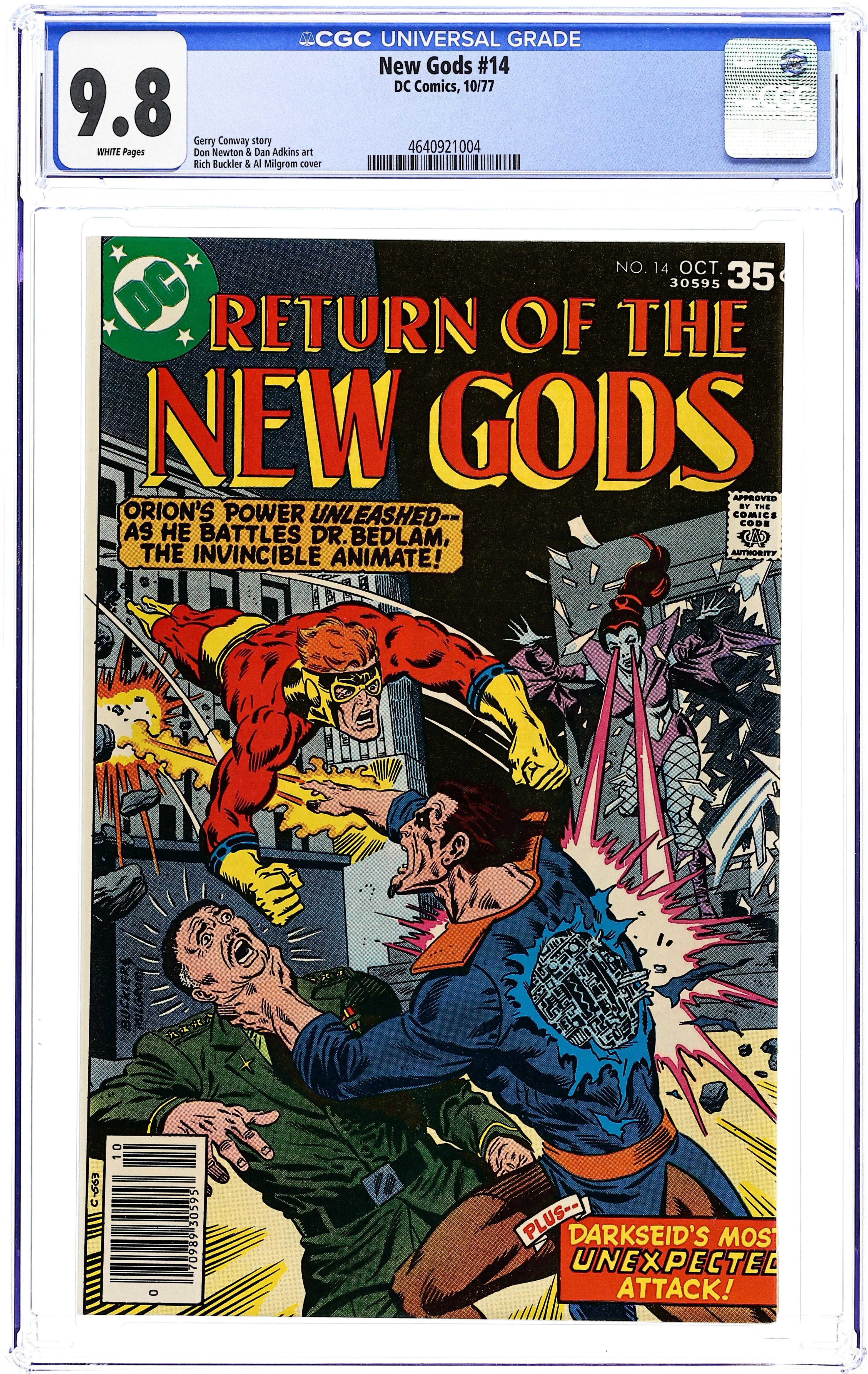 Cover by Rich Buckler and Al Milgrom. "A child shall leave you". Part 3 of 10. Story by Gerry Conway. Pencils by Don Newton. Inks by Dan Adkins. Darkseid sends the animates of Dr. Bedlam to attack all six targets on Earth at once. Overwhelmed, the New Gods must call upon the power of Izaya the Highfather, unaware that this is exactly what Darkseid wants. 32 pages. Full color. Cover price $0.35.