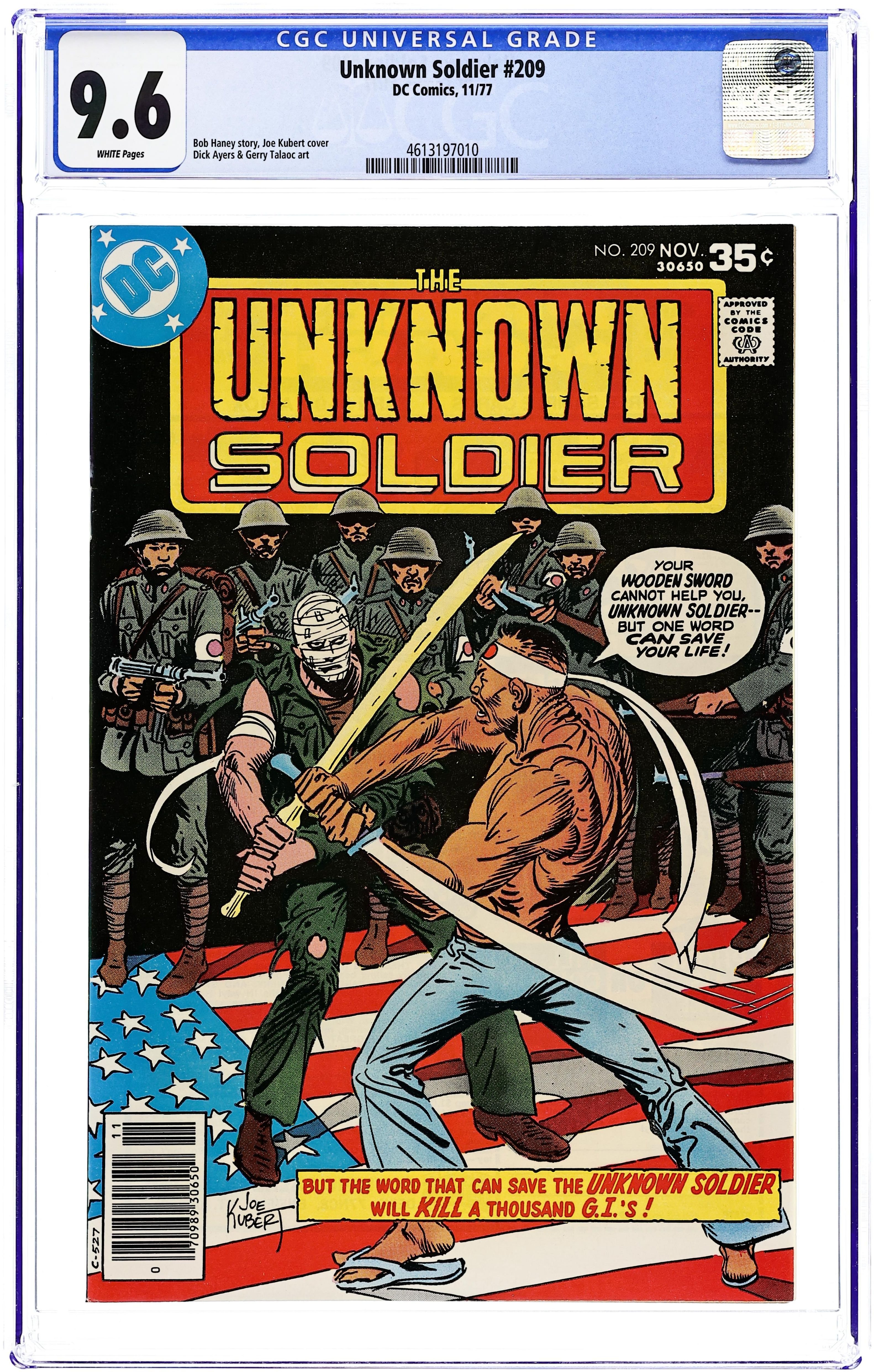 Cover by Joe Kubert. Tattered Glory!, script by Bob Haney, pencils by Dick Ayers, inks by Gerry Talaoc; The Unknown Soldier helps take Iwo Jima. Real Estate, script by Robert Kanigher, art by Frank Thorne; WWI Infantry story. 36 pgs., full color. $0.35. Cover price $0.35.
