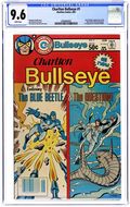 Cover pencils by Dan Reed, inks by Bob McLeod. The Enigma!, script by Benjamin Smith, pencils by Dan Reed, inks by Dan Reed, Al Val, and Bill Black; The Question meets the Blue Beetle as the Enigma's men hijack the Beetle's flying Bug; The pair use a homing device to track the Bug to the Enigma's warehouse hideout, where they have to overcome a series of deathtraps. Ads for Cap'n Catnip and Womble, Jack Bunny, and Neil the Horse. Cover price $0.50.