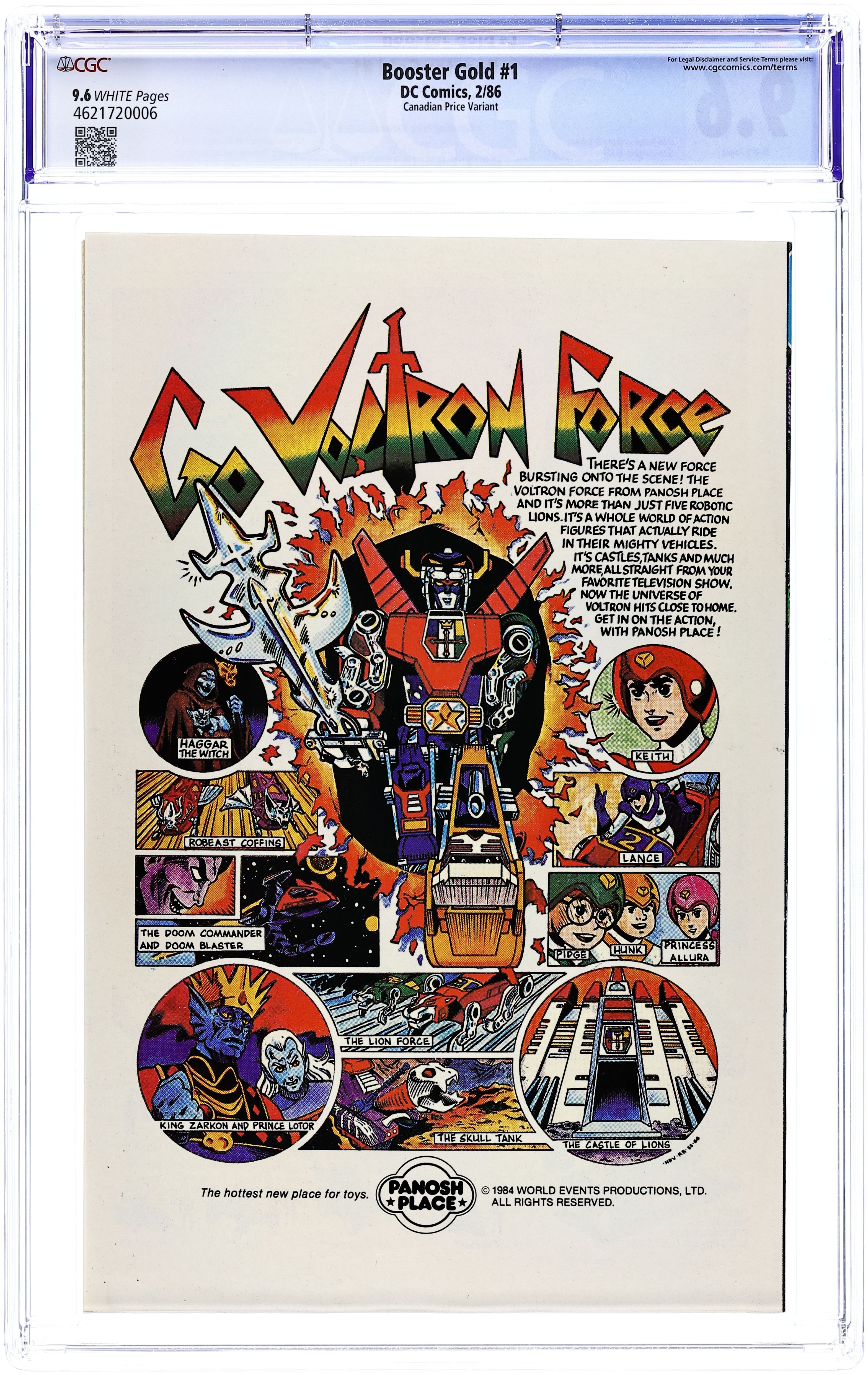 Canadian edition with $.95 cover price. Crisis on Infinite Earths cross-over. Cover pencils by Mike Clark. The Crisis Comes to 1942! (and Vice Versa), script by Roy Thomas and Dann Thomas (co-plotter), pencils by Mike Clark (pp. 1-6, 8-17), Arvell Jones (pp. 18-23), and Jerry Acerno (p. 7), inks by Alfredo Alcala (pp. 1-6, 8-17), Vince Colletta (pp. 18-23), and Jerry Acerno (p. 7); The Monster Society is taken over by Oom, as he becomes the new leader, tossing Mr. Mind's craft into space, as it later lands on Earth-S; Oom is destroyed and the Monster Society (renamed Society of Oom by Oom himself) is defeated by the Squadron when the Dummy tells Green Lantern to focus his ring on Oom's chest to extract the crimson jewel buried inside his body. Cover price $0.95.