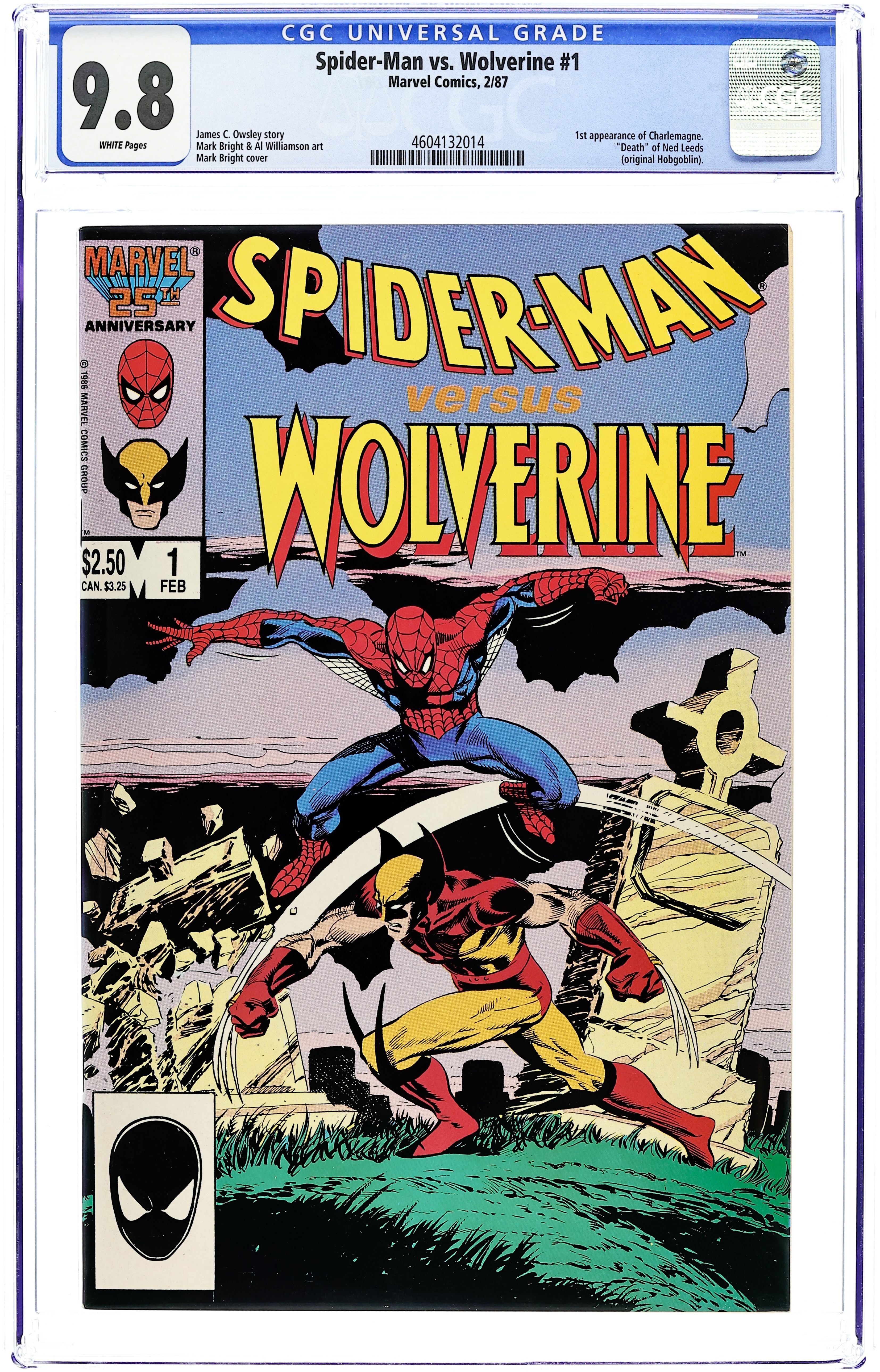 1st Printing. Direct Edition. "High Tide!" Giant-sized issue. Script by Jim Owsley. Pencils by Mark Bright. Inks by Al Williamson. Cover by Mark Bright. Plot continues from Amazing Spider-Man 288. Ned Leeds is chasing the story of his career! The Daily Bugle's ace reporter uncovers evidence that a notorious cold war spy has resurfaced in divided Germany! After convincing Jonah to spring for the trip, Ned and Peter Parker fly to West Berlin to start their investigation! The infamous KGB operative (aka Charlemagne) is a long-time friend and associate of Wolverine! And when Logan hears that she's back in business, the Adamantium-laced X-Man likewise travels to Germany to find her! Sadly the Bugle-sponsored business trip turns tragic when Peter discovers Ned murdered in their hotel. Oh no, who killed Betty's husband? The Amazing Spider-Man invades East Berlin and teams up with Wolverine to unearth the truth! But the web-slinger's noble intentions lead him into a clandestine world of grisly violence and repulsive death! Is Wolverine going to help the wall-crawler cope with tragedy...or just add to his misery? An intense issue from start to finish! Story epilogues continues in Amazing Spider-Man #289 and Web of Spider-Man #29. 64 pages, FC.