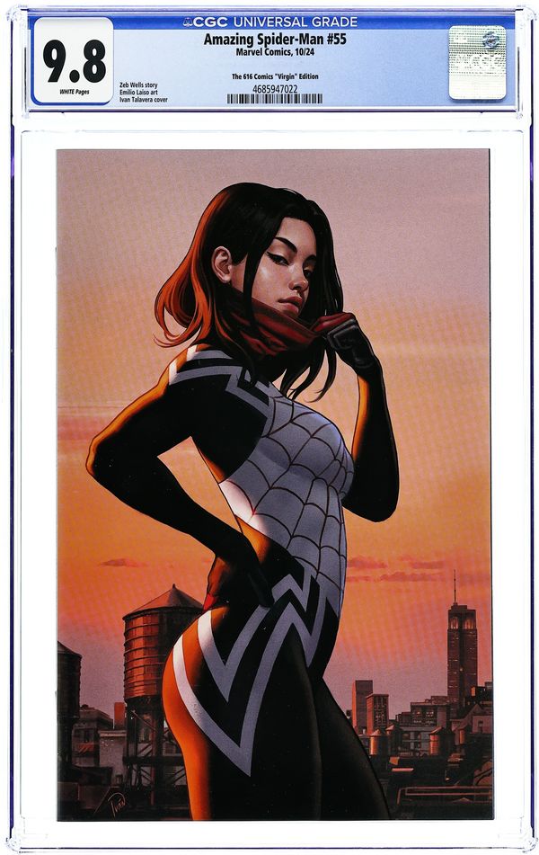 The 616 Comics Exclusive Virgin Cover by Ivan Talavera. Written by Zeb Wells. Art by Emilio Laiso. Cover by Luciano Vecchio. The last arc nearly killed Spider-Man (others weren't so lucky). Peter hopes to take a breath but gets a new challenge to face in this, the 949th legacy issue of AMAZING SPIDER-MAN! This is the last domino to fall as we head into our next big centennial! 32 pages, full color. Rated T