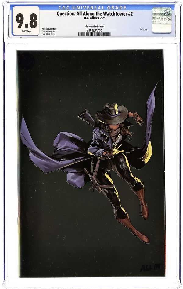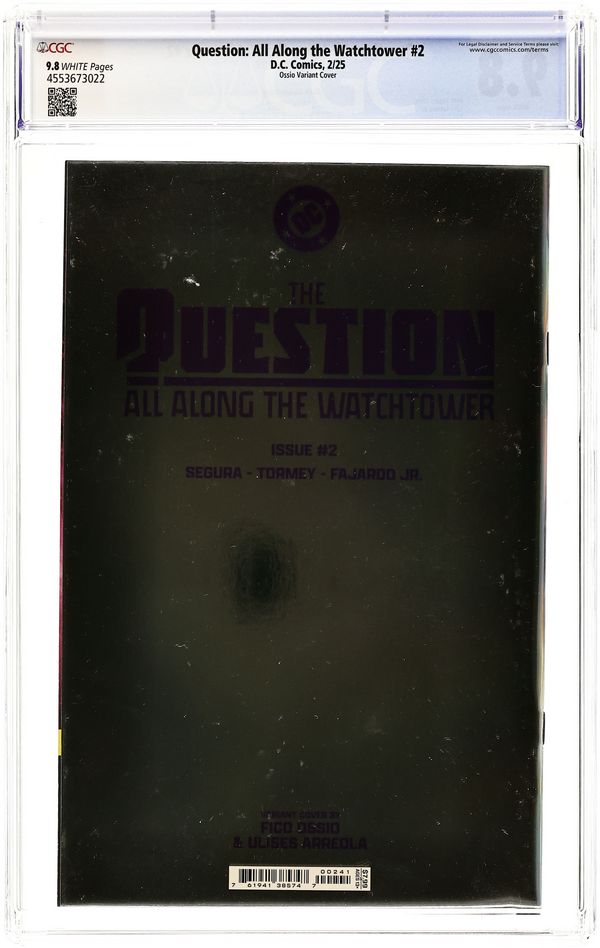 Written by Alex Segura. Art by Cian Tormey. Cover by Fico Ossio. As the Justice League Watchtower reels from a grisly murder, the Question must face a dark reality: that the main suspect in the brutal crime could be someone close to her! But as Renee digs into the unsavory mystery, she's derailed by an unexpected--and powerful--new foe. But are the killing and surprise attack related? If so, who's pulling the strings? The Question must navigate clues and double crosses to get to the truth...if she can survive that long. 32 pages, full color. Rated T+ Cover price $7.99.