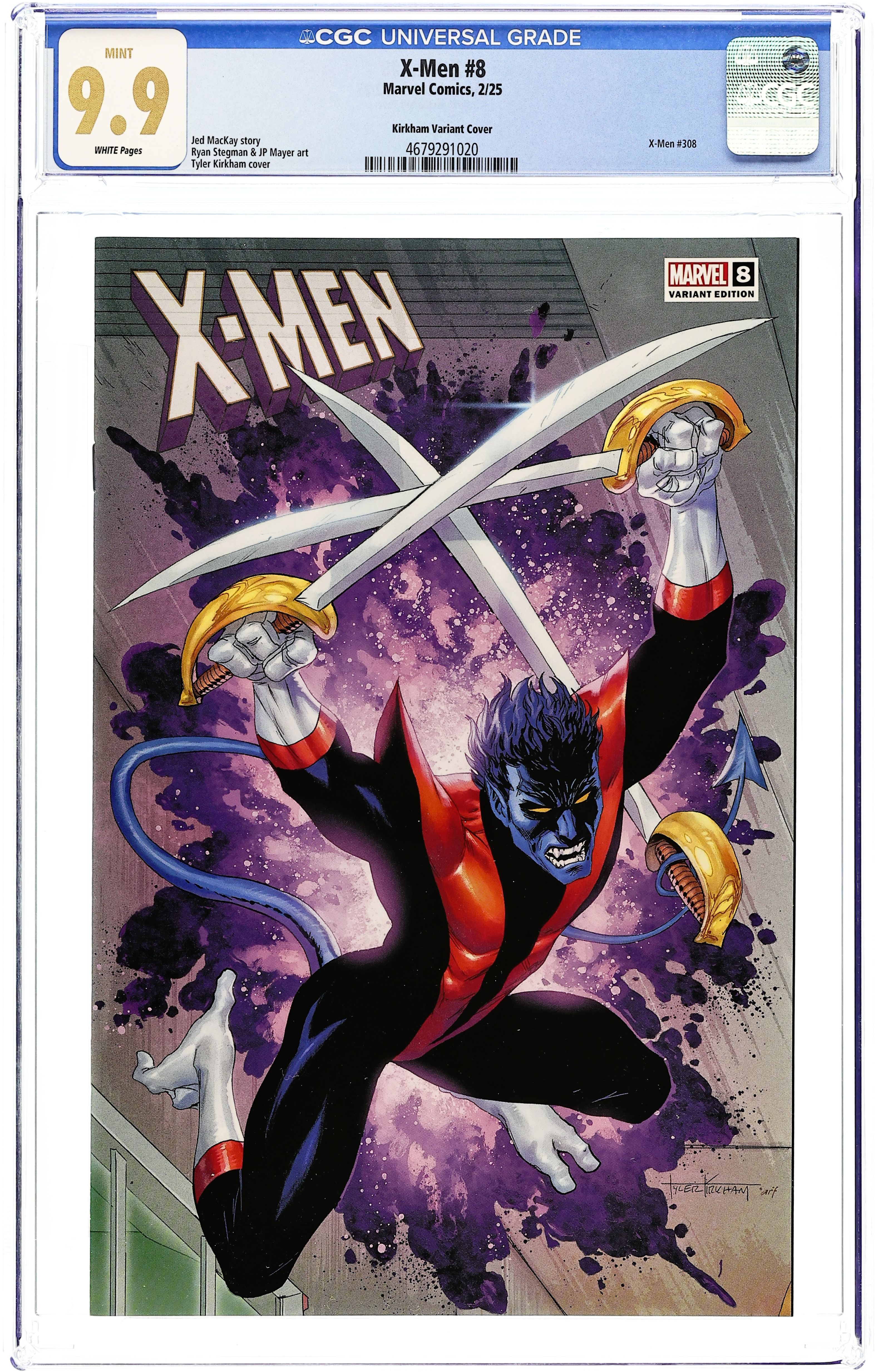 Comics Illuminati (Unknown Comics, Comic Traders, and Sleeping Giant) exclusive Variant Cover by Tyler Kirkham. Written by Jed MacKay. Art by Ryan Stegman. "RAID ON GRAYMALKIN" PART ONE! With one of their own incarcerated, the X-Men move on Graymalkin Prison in order to free their teammate. But it's not just one team - in Alaska, Cyclops' X-Men scramble a rescue mission, while in Louisiana, Rogue's X-Men move to strike out on their own sortie. Doctrinal rivals each with their own objective, will these two fractious teams find themselves at cross-purposes? After all...an "X" is made by two lines crossing. 32 pages, full color. Rated T+ Cover price $4.99.