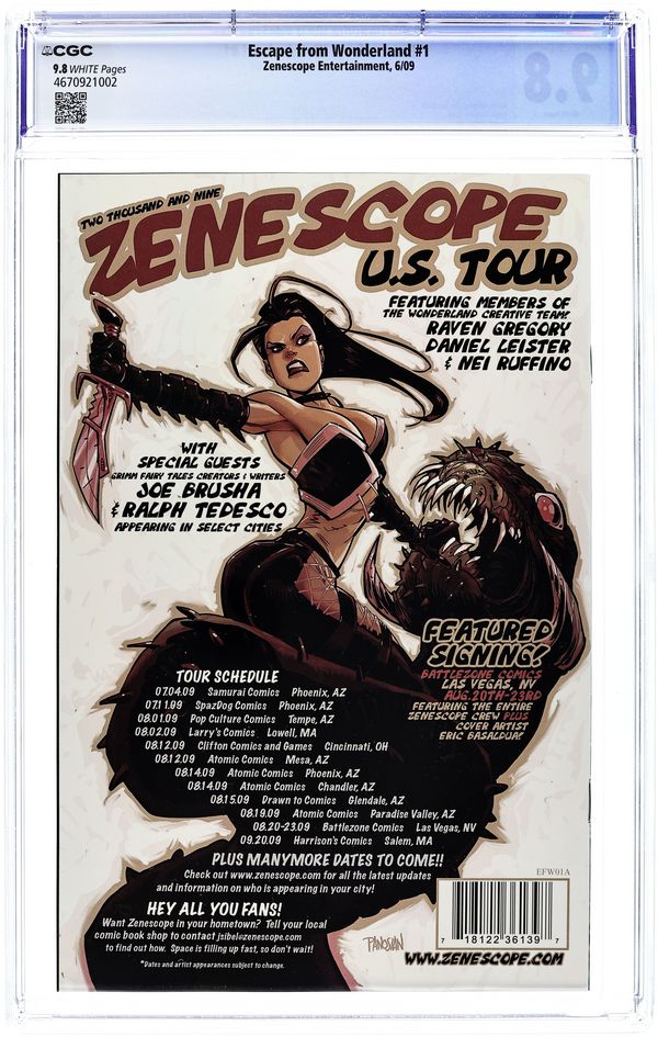 Published Jun 2009 by Zenescope Entertainment.Grimm Fairy Tales Escape from Wonderland (2009 Zenescope) 1B CGC 9.8