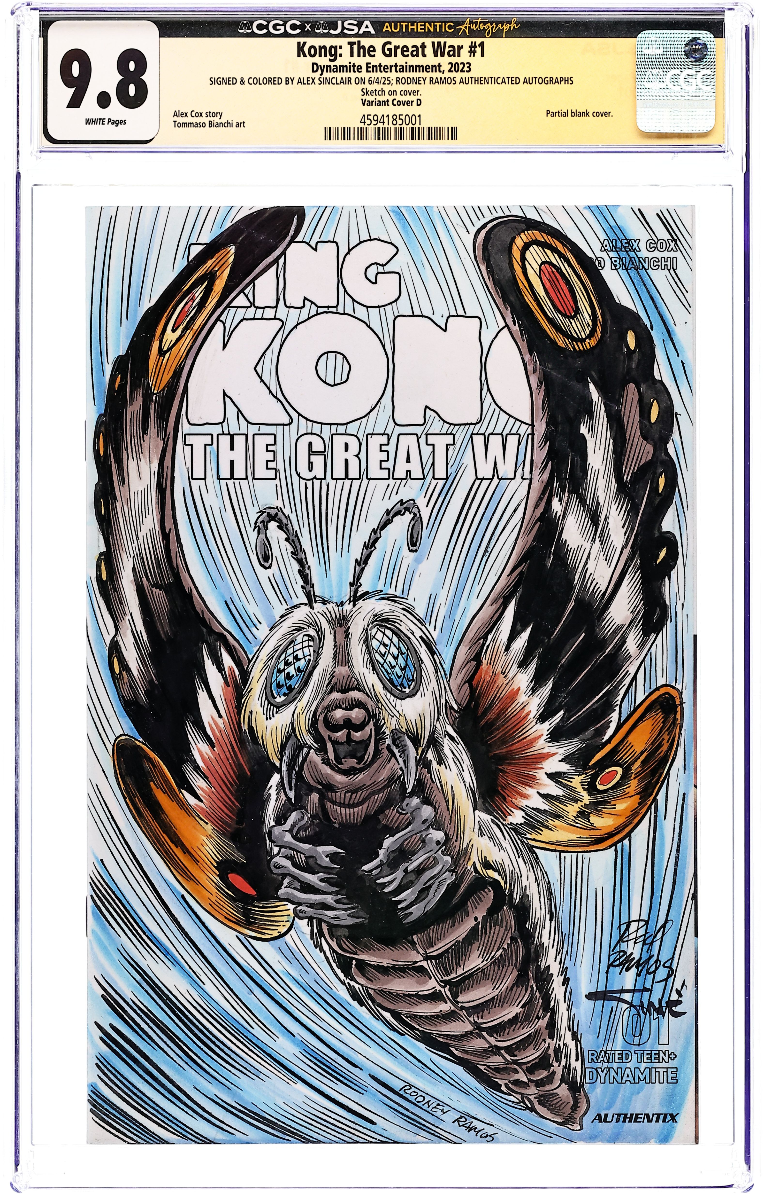 - Signed & Colored by Alex Sinclair on 6/4/25; Rodney Ramos Authenticated Autographs. Sketch on cover. Variant Cover D.