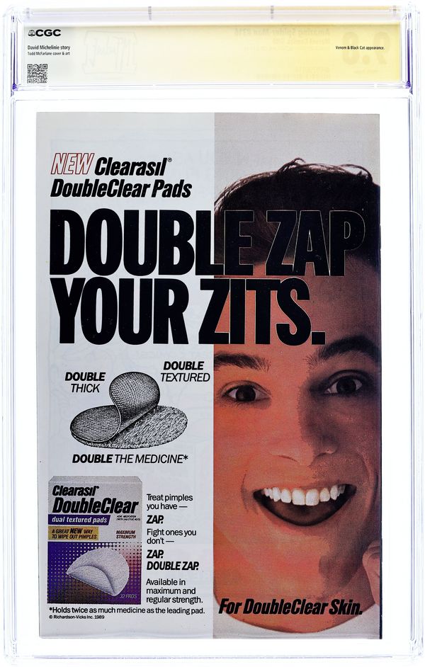 Newsstand Edition. "Dead Meat" Part 1 of 2. Script by David Michelinie. Art by Todd McFarlane. Cover by Todd McFarlane. Venom is back in New York City! And the deranged Eddie Brock is looking to kill Peter Parker or Spider-Man with extreme prejudice! However first the psychotic symbiote has to find where the Parkers are living! At the web-slinger's former Bedford Towers residence, Venom runs into and then runs roughshod over the Black Cat! But Felicia doesn't know where the wall-crawler is either! Later on Peter learns that his worst nightmare has returned and his family is in grave danger. Spider-Man can't wait for Venom to make the first move. The web-slinger must attack! Cameo appearances by Aunt May, Glory Grant, and Eduardo Lobo. (Note: This two-part story was reprinted in 1990 in the trade paperback: Spider-Man vs. Venom.) 36 pages. Cover price $1.00.