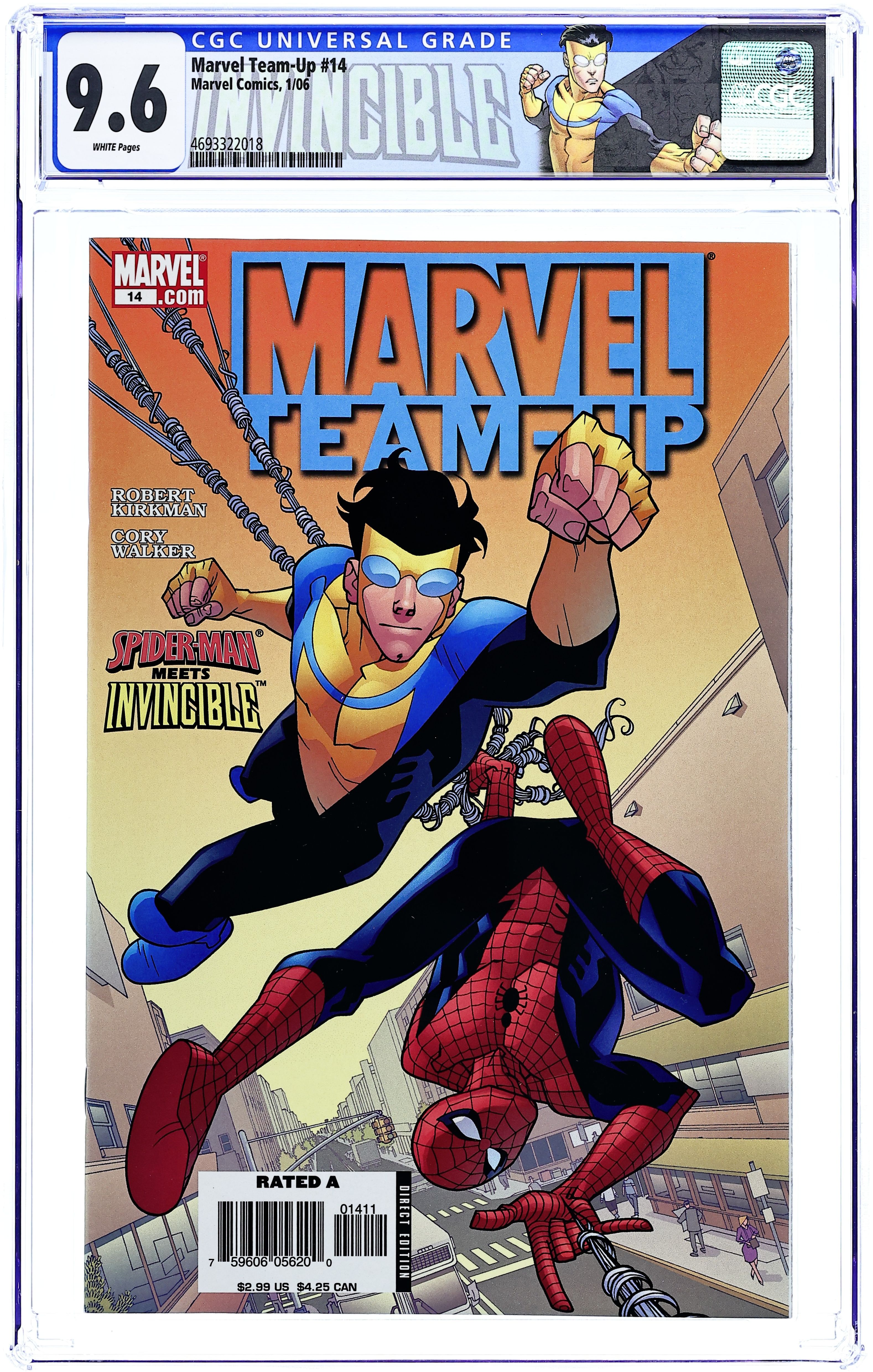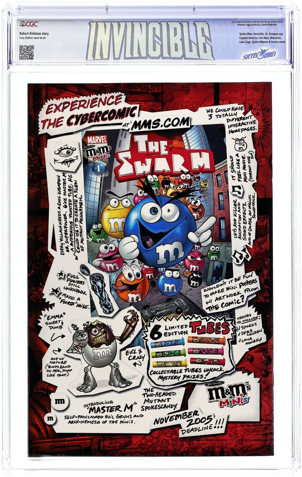 Written by ROBERT KIRKMAN Pencils & Cover by CORY WALKER. The team-up you thought you'd never see! Robert Kirkman and Cory Walker's INVINCIBLE bounces over to the Marvel Universe for a visit! Doctor Octopus is on the loose and Spider-Man is on the job with the help of INVINCIBLE (story continues in Invincibles #33-34). Also, the New Avengers make an appearance- ? so don't miss this one-of-a-kind crossover event! 32 PGS./T+ SUGGESTED FOR TEENS AND UP ...$2.99 Cover price $2.99.