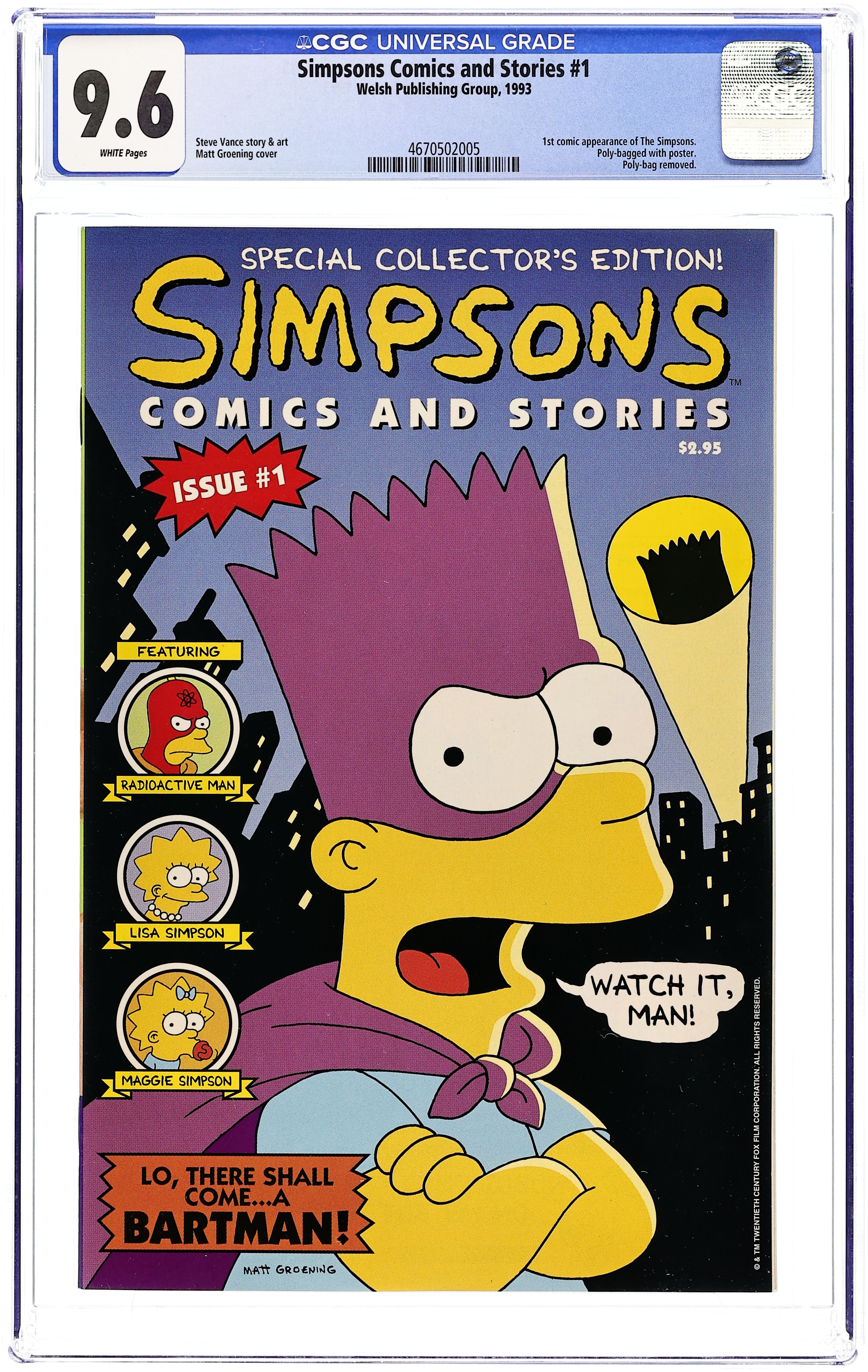 Simpsons Comics and Stories (1993 Bongo) 1D.U CGC 9.8 Groening Unbagged Variant