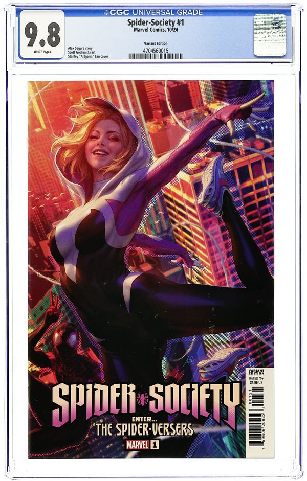 Written by Alex Segura. Art by Scott Godlewski. Cover by Stanley "Argerm" Lau. May the first meeting of the Spider-Society commence! That's right, every Spider-Character you love (and some you haven't met yet) all show up in the same room for the most crazy meeting the Multiverse has ever seen. That's right, every Spider-Person will be in the same room for the most crazy meeting the Multiverse has ever seen! Don't miss the start of this incredible new miniseries! 40 pages, full color. Rated T+ Cover price $4.99.