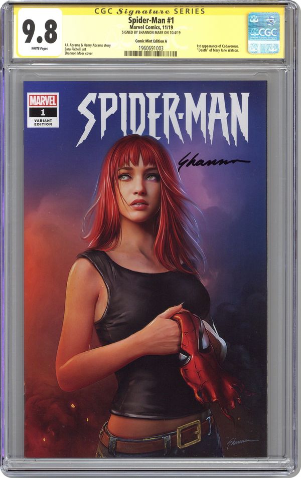 Comic Mint A variant by Shannon Maer. Written by J. J. Abrams and Henry Abrams. Art by Sara Pichelli. WHO IS CADAVEROUS?! The most shocking and incredible comic of 2019 is here as J.J. ABRAMS (STAR WARS, STAR TREK, SUPER 8) and his son HENRY ABRAMS are joined by superstar artist SARA PICHELLI (MILES MORALES, GUARDIANS OF THE GALAXY) team up for SPIDER-MAN! What do they have planned for Peter Parker and Mary Jane Watson?! Who is Cadaverous?! The Modern Master of Mystery Makes His Marvel this September! 40 pages, full color. Rated T