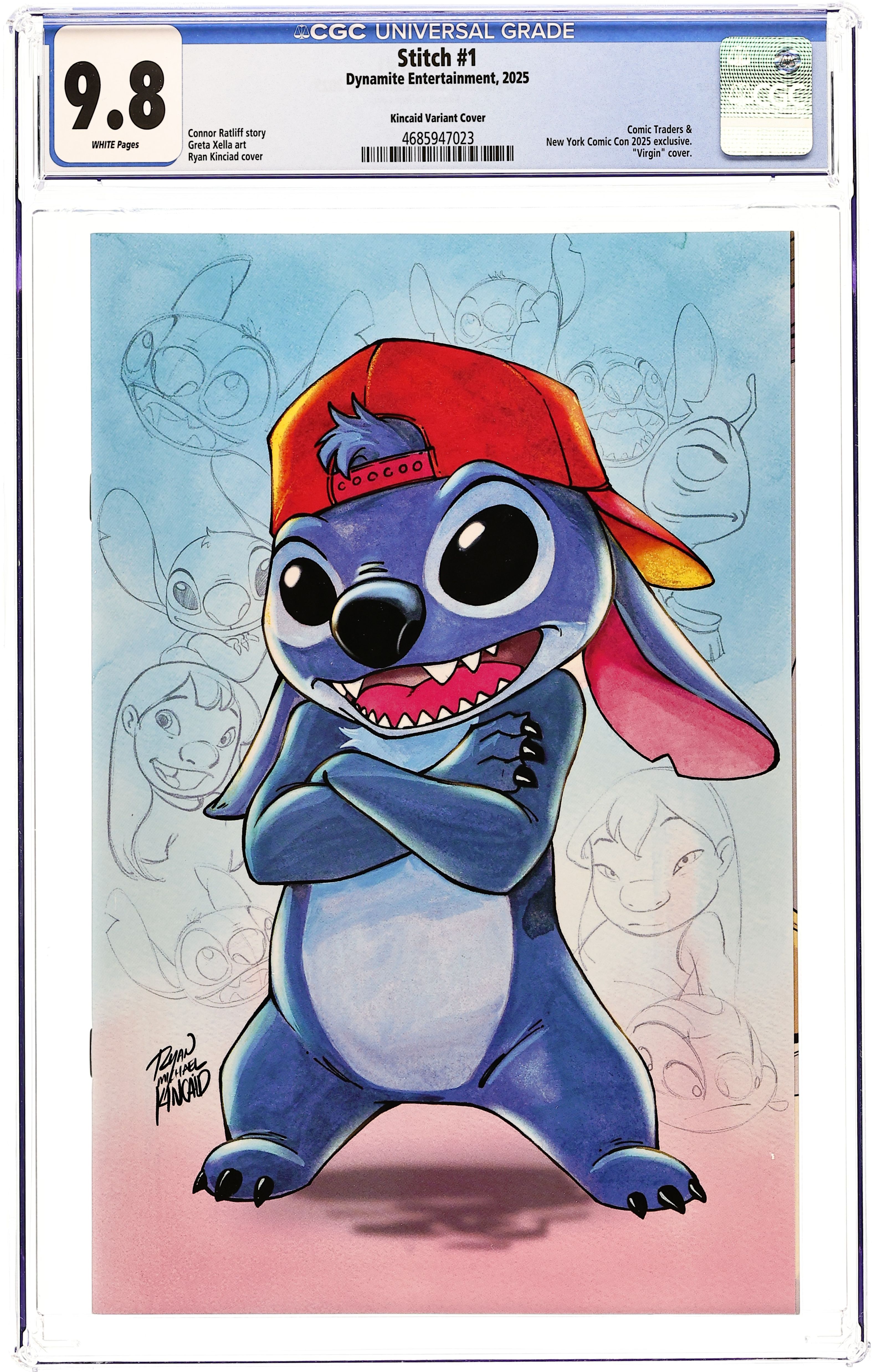 Comic Traders New York Comic Con Exclusive Virgin Cover by Ryan Kincaid. Written by Connor Ratliff, James III. Art by Greta Xella. THE GALAXY'S MOST DANGEROUS (AND ADORABLE) WEAPON RETURNS! Dr. Jumba Jookiba, the scientist responsible for releasing the blue-furred phenomenon known as Stitch onto an unsuspecting galaxy, is in danger of losing his membership in E.G.G.S. - the Evil Genius Group-slash-Syndicate. With all the time that he's been spending on Earth, Dr. Jumba hasn't earned enough Villain Points to re-up next year. And while he no longer considers himself fully 'evil,' he really wants to stay in E.G.G.S. - mainly for their great dental plan, and complimentary intergalactic travel lounges. What's a morally flexible genius to do? Why, create a series of evil inventions in an attempt to remain qualified, of course! There's just one problem (well, two, if you count Pleakley's vain attempts to rein in the good doctor): Stitch is a wild card that Jumba can never properly account for in his calculations - and the fuzzy little ball of chaos finds a way to ruin every one of his brilliant inventions! 32 pages, full color.