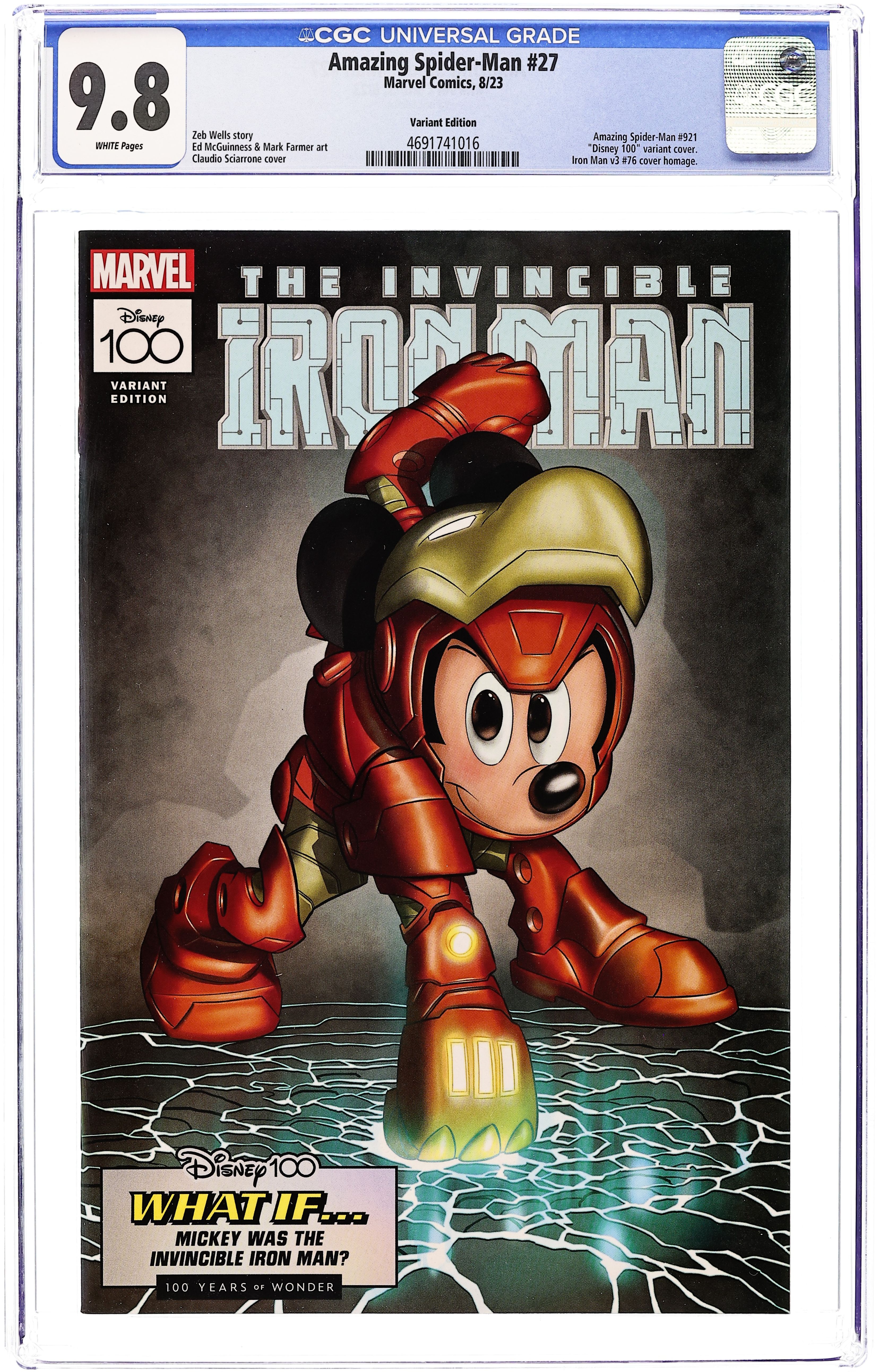 NOTE: This is a variant cover for Amazing Spider-Man #27, NOT Invincible Iron Man. Written by Zeb Wells. Art by Ed McGuinness. Cover by Claudio Sciarrone. Grief looms over Peter after last issue's shocking death! Spider-Man's villains are more than happy to keep him distracted… Your eyes don't deceive you, DOCTOR OCTOPUS IS BACK! 32 pages, full color. Rated T Cover price $3.99.