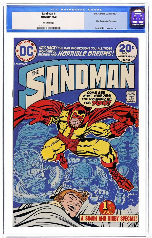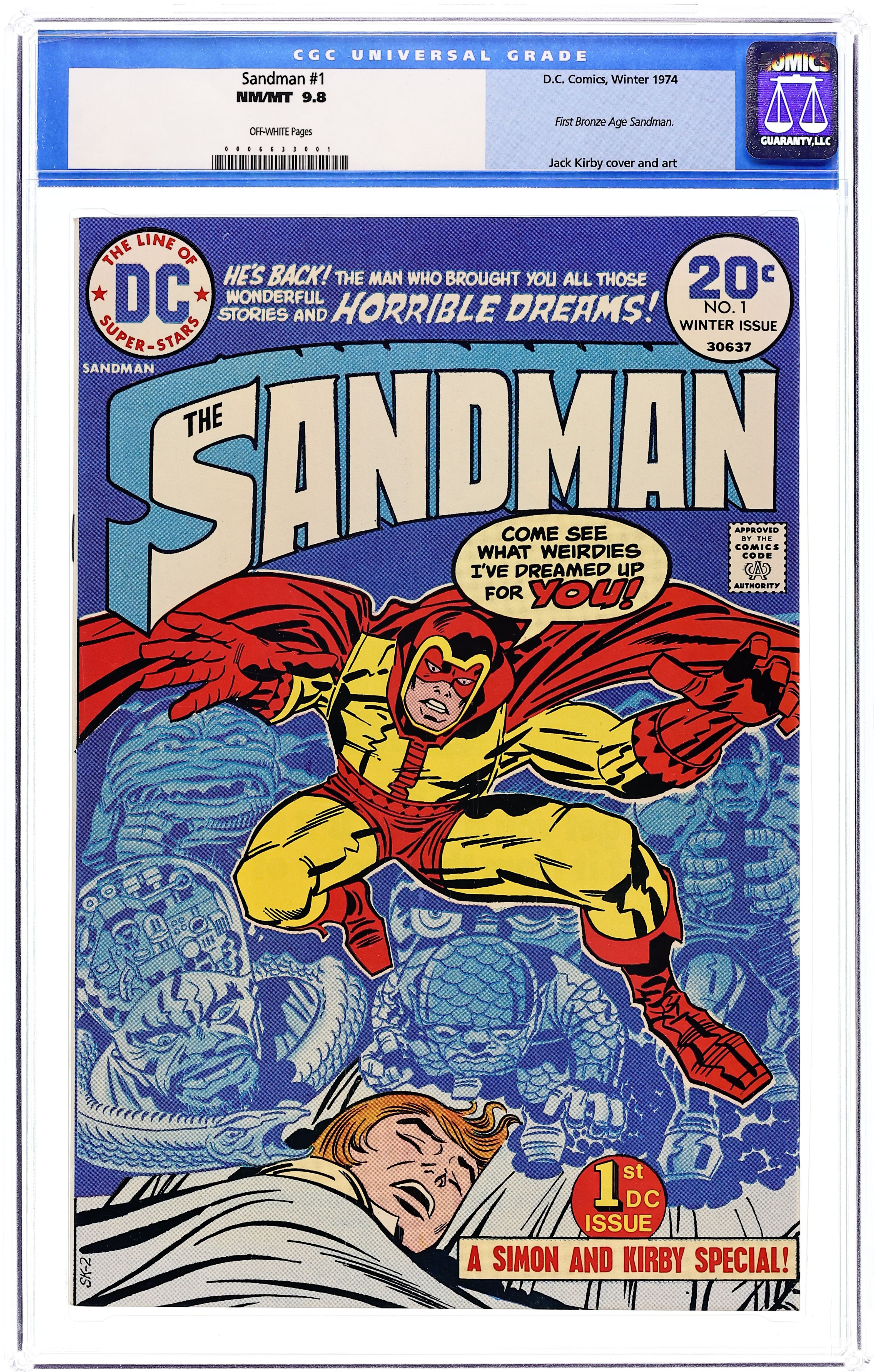 1st Bronze Age Sandman. Last Simon & Kirby collaboration. Cover by Jack Kirby and Frank Giacoia. General Electric, script by Joe Simon, art by Jack Kirby and Mike Royer; When a boy named Jed Walker has a strange dream of a drowning man who appears in reality to give him an evil little doll, it spurs the Sandman to emerge from the Dream Stream into the real world to stop the plans of General Electric. Article on memory and dreams by Alan Asherman. 36 pgs., full color. $0.20. Cover price $0.20.