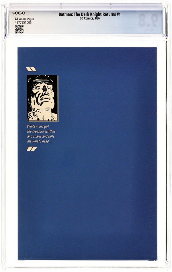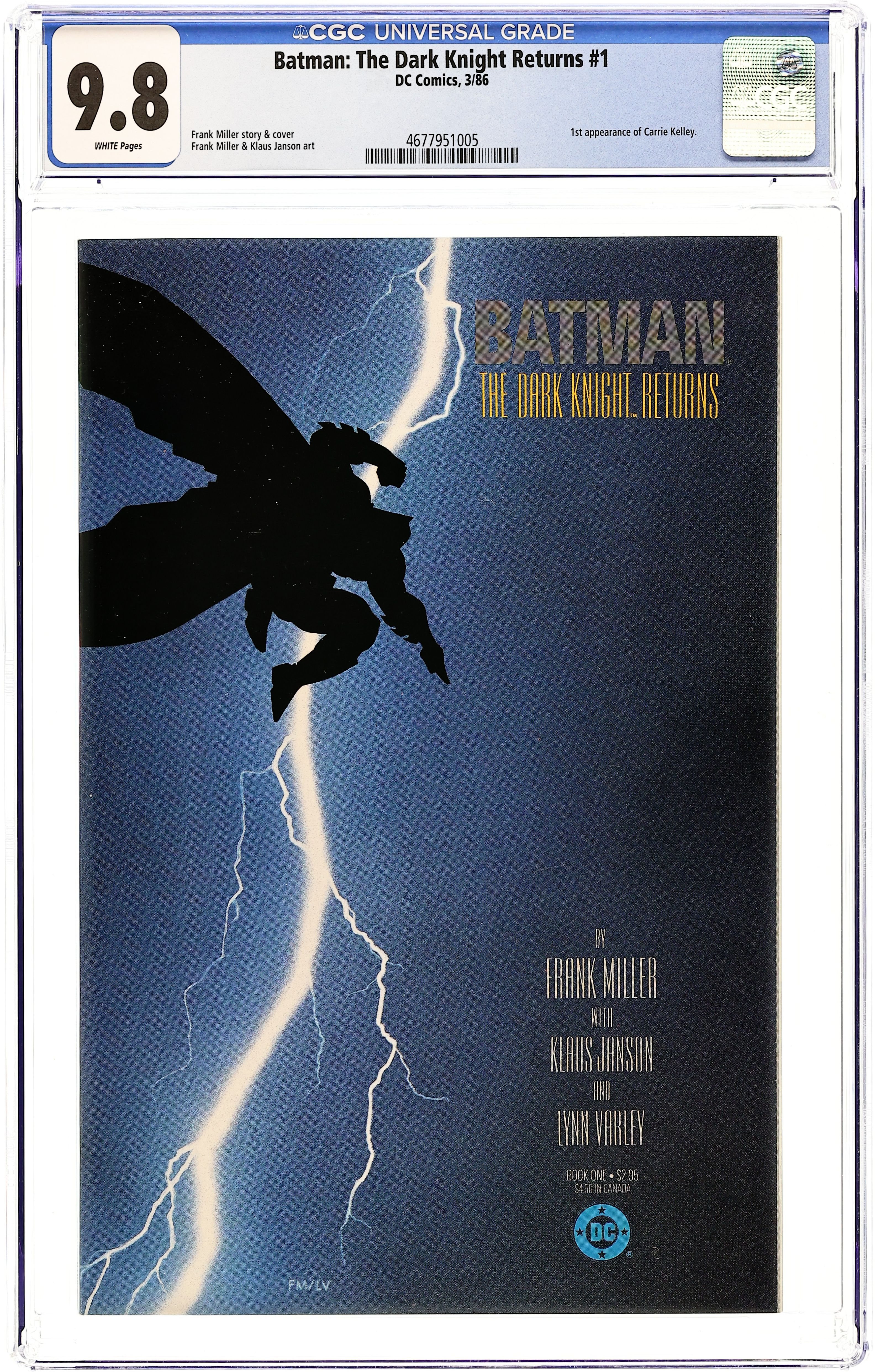 1st printing. NOTE: 2nd printings are labeled as such on the inside cover. Cover by Frank Miller. "The Dark Knight Falls," script by Frank Miller, pencils by Frank Miller, inks by Klaus Janson; Russia launches a nuclear warhead called Coldbringer in response to Superman's presence in Corto Maltese; Superman diverts the missile to an uninhabited desert area; The warhead was designed to disrupt electronics and communications and throw dust and debris into the atmosphere; Deprived of sunlight, Superman nearly dies; Gotham descends into chaos; Some citizens, including Jim Gordon, pull together to fight the fires and retain some semblance of civilization until the power is restored; Batman battles the Joker and the police; The U.S. government sends Superman to take the Dark Knight down; Oliver Queen, the former Green Arrow, prepares Batman for his ultimate battle. 52 pgs., full color. Cover price $2.95.