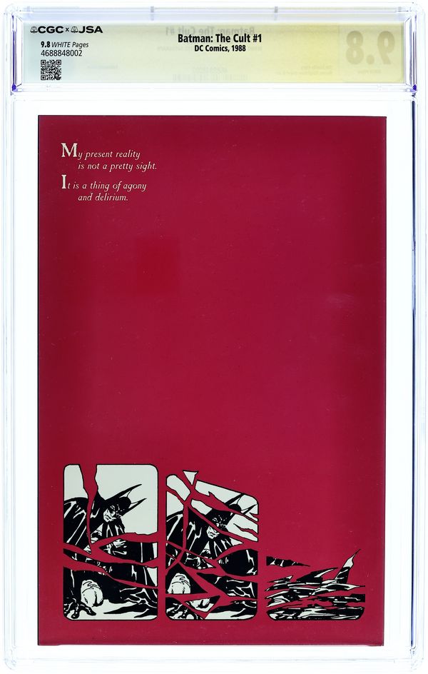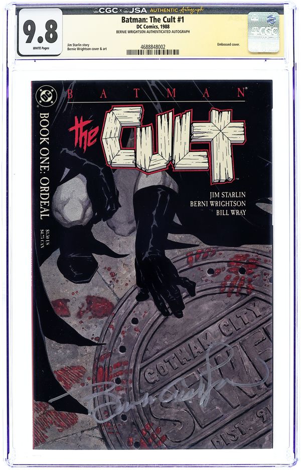 Book one of a four-issue series, "Ordeal" finds Batman prisoner of a religious cult led by Deacon Joseph Blackfire. The cult tries to break Batman's will and have him join in their cause. Prestige format, written by Jim Starlin with art by Bernie Wrightson. Cover price $3.50.
