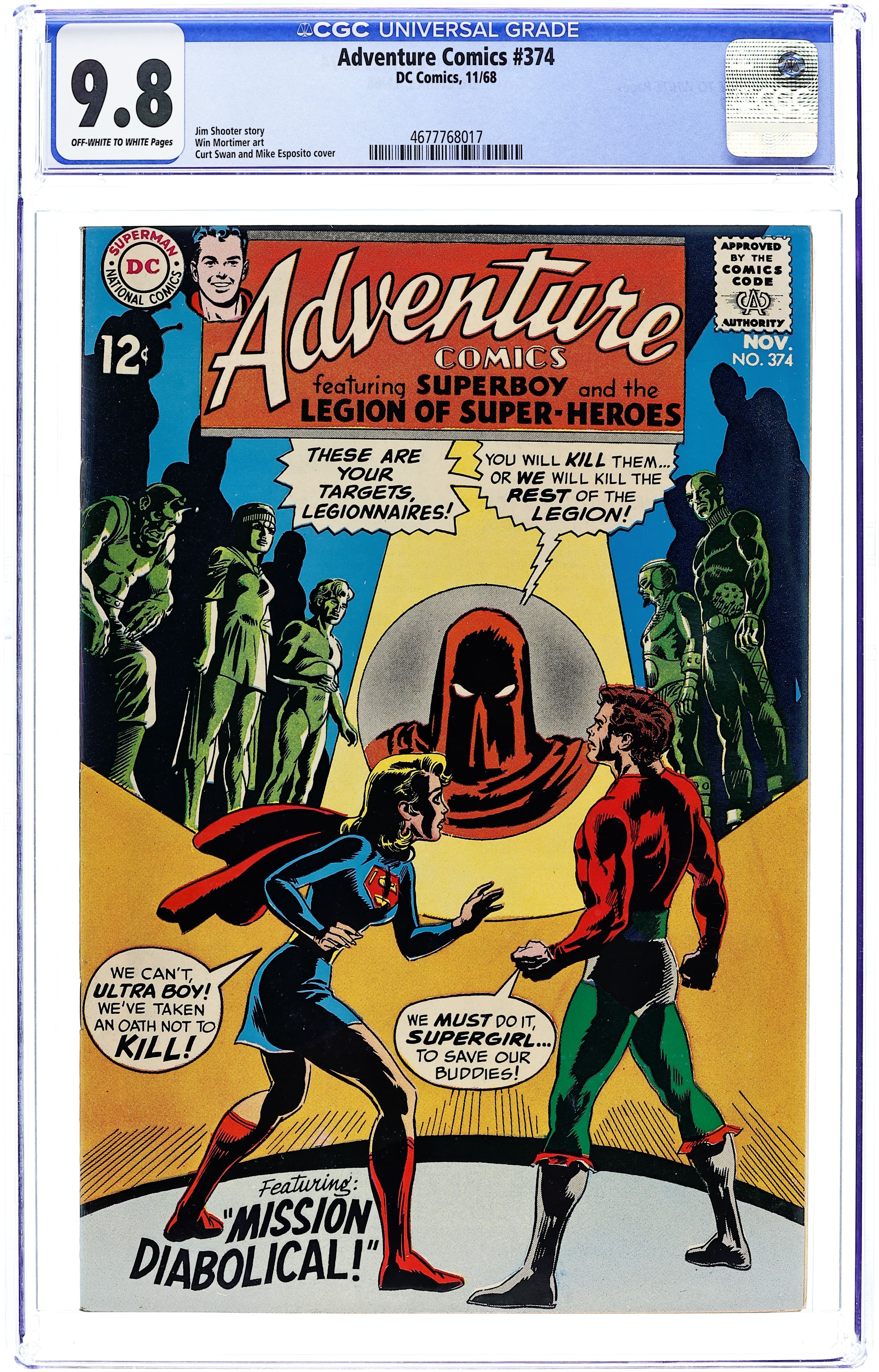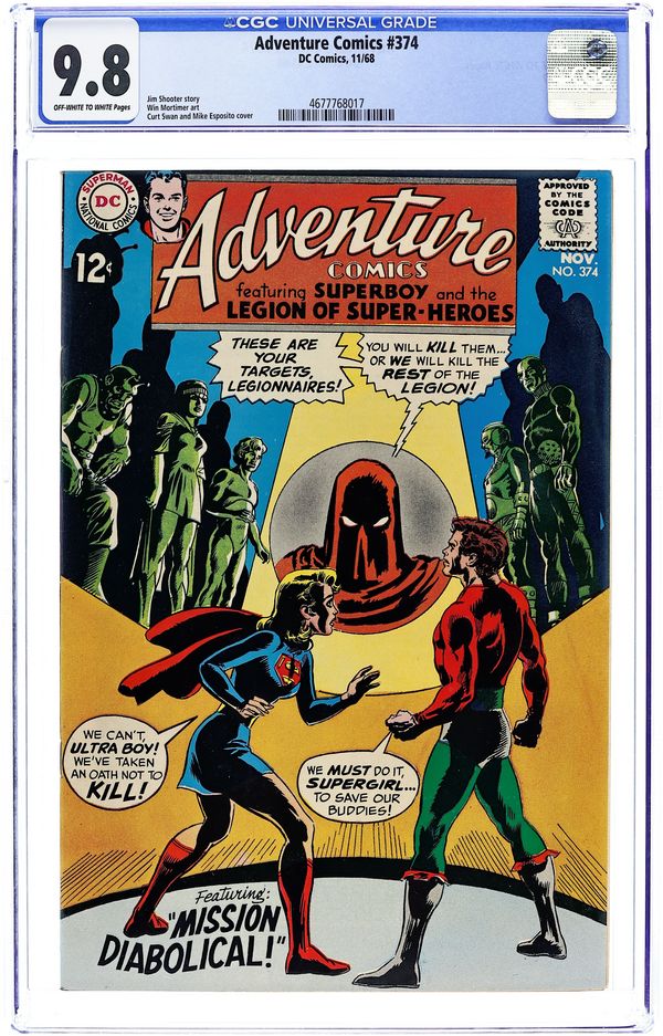 Cover pencils by Curt Swan, inks by George Klein. Part I: The Menace of Dream Girl!--Tales of the Legion of Super-Heroes, script by Edmond Hamilton, art by John Forte; Dream Girl joins the Legion and insists Lightning Lass be expelled when she loses her powers and demands Triplicate Girl be court-martialed for accusing her of causing Lightning Lass to lose her power. Super-Turtle humor page by Henry Boltinoff. Part II: The Doom of the Legion!--Tales of the Legion of Super-Heroes, script by Edmond Hamilton, art by John Forte; Even more Legionnaires are expelled before Dream Girl reveals to Star Boy that it was all a plot to prevent their deaths. In this two-parter, Lightning Lass becomes Light Lass, and the Hall of Fame series begins.The Shrinking of Superboy, art by John Sikela. 36 pages, Full Color. Cover price $0.12.