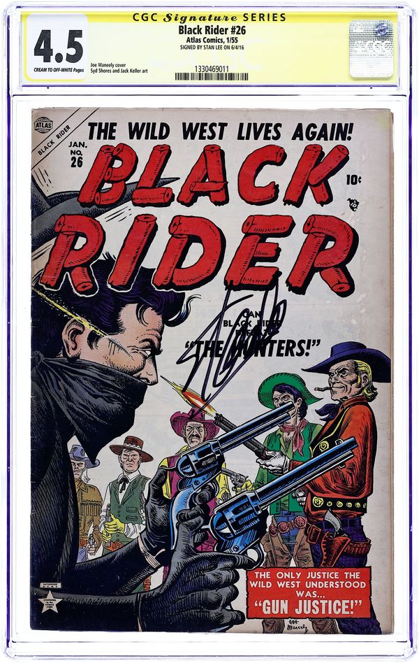 The Black Rider stars in "The Hunters," "Gambler's Folly," and "Gun Justice!" Untitled Kid Colt Outlaw back-up story (art by Jack Keller). Two-page text story, "A Score to Settle!" Cover price $0.10.