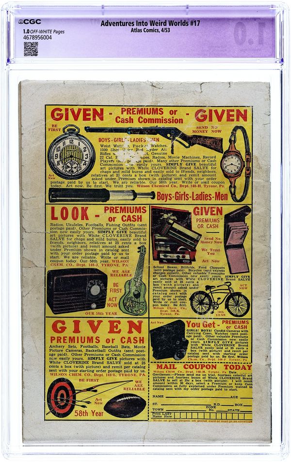 Published Dec 1953 by Marvel/Atlas.$545.00- Paper: Cream to off white