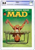 Cover art by Kelly Freas. Son of MAD ad. MAD hardcover books ad. "Pictures The Editor Left Out," script by Al Jaffee, art by Joe Orlando; Compares the photos used in magazine articles with unused photos that might have been taken just afterwards. "The Concert," script and art by Don Martin; Problems occur when a man who is both a musician and magician carries his equipment for both professions on stage. "MAD Beats The TV Plug Crackdown," script by Paul Krassner, art by Bob Clarke; MAD introduces some products with brand names that will inadvertently be sprinkled throughout normal speech. "The MAD Madison Avenue Primer," script by Larry Siegel, art by Wallace Wood; An attempt to make the world of advertising understandable by seven-year olds. "The Arthur Money Party," script by Larry Siegel, art by Mort Drucker; Parody of the Arthur Murray Party TV show. "I.B.M. Cards," script by Frank Jacobs, art by Joe Orlando; Interpreting the punches on computer billing cards. "Popular Politician," script by Gary Belkin, art by George Woodbridge; What a celebrity magazine based on politicians might look like. "The Jackie Talented Story," script by Sid Caesar, art by Wallace Wood; A parody of all the "unknown makes it big in show business" movies. "Barber Shop," script and art by Dave Berg; Special chairs at the barber shop so men can enjoy a fantasy while having their hair cut. "The Hip Raven," script by Paul Laikin (translation) and Edgar Allan Poe (original), art by Mort Drucker; A translation of Edgar Allan Poe's "The Raven" into hip slang. Parody of a Johnson & Johnson first aid products ad, art by Kelly Freas. 52 pgs., B&W. Cover price $0.25.
