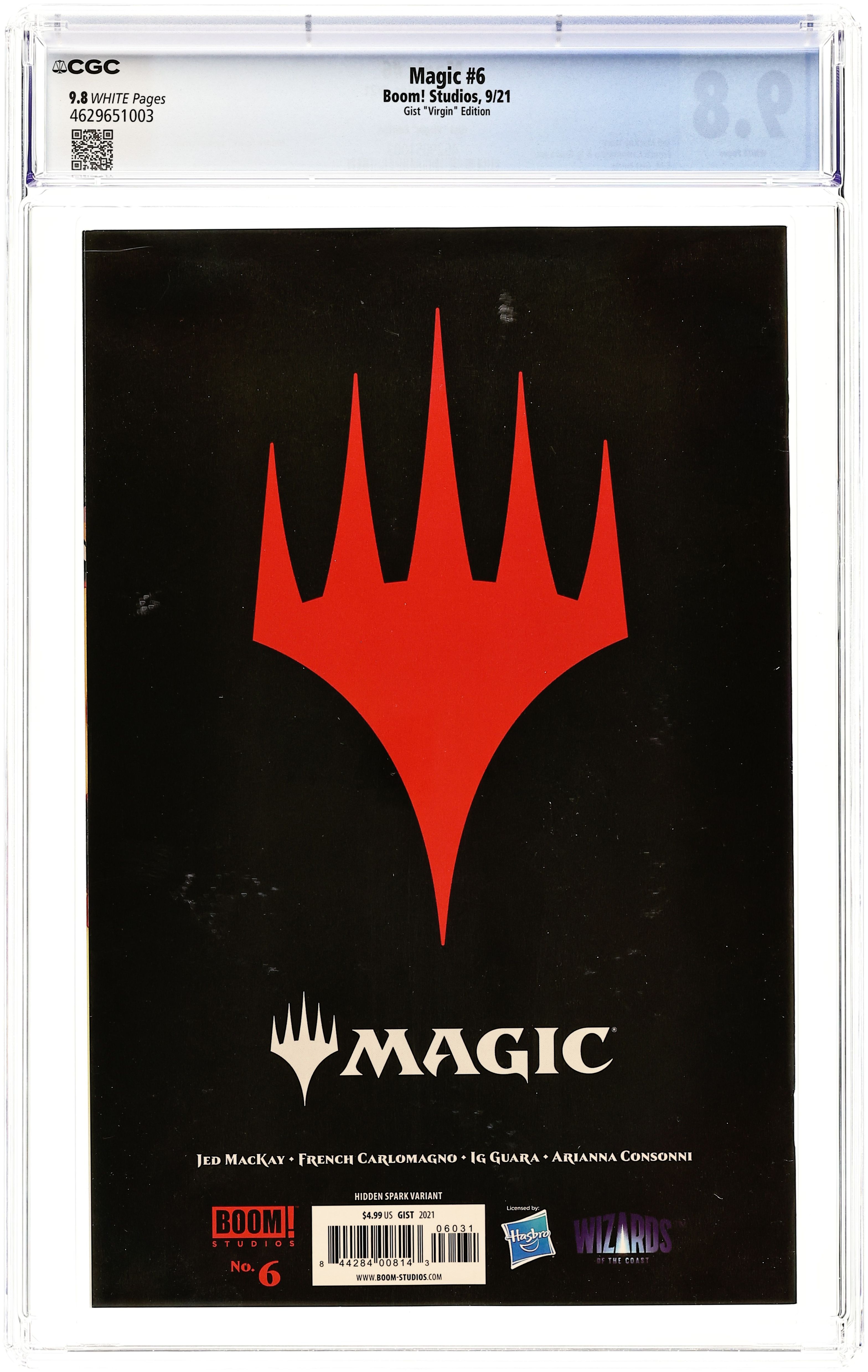 Starts Dec 15 Scorpion Comics Exclusive Virgin Cover by Santa Fung. Written by Jed MacKay. Art by Ig Guara. A new beginning for the pop culture phenomenon of Magic starts here from Jed MacKay (Marvel's Black Cat) and Ig Guara (Marvel's Ghost-Spider), perfect for new readers and long time fans. Across the vast Multiverse, those gifted with a 'spark' can tap into the raw power of Magic and travel across realms -they are Planeswalkers. When coordinated assassination attempts on Guildmasters Ral Zarek, Vraska and Kaya rock the city of Ravnica and leave Jace Belleren's life hanging in the balance, a fuse is lit that threatens not just these three Guilds, but the entire plane of Ravnica. Now these three must covertly infiltrate the wild plane of Zendikar and form a tenuous alliance to uncover why the targets of the assassins have all been Planeswalkers...which will lead them straight to one of the most enigmatic characters in Magic history! 32 pages, full color.