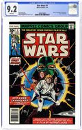 1st printing, standard 30 Cent Newsstand Edition with UPC. "A New Hope!" Part 1 of 6. Based on the screenplay by George Lucas. Adapted by Roy Thomas. Art by Howard Chaykin and Steve Leialoha.