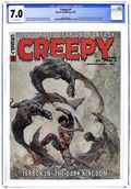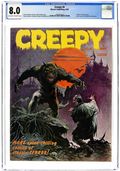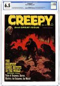 When the Comics Code Authority cracked down on the comic book industry in 1955, horror comics all but faded from the scene. Enter Creepy magazine, publisher James Warren's tribute (after a fashion) to EC's vaunted horror comics line, which couldn't survive the Code's strong arm censorship tactics. Magazines weren't subject to the same rules, giving Warren the freedom to publish more mature content. Eerie, Vampirella, and other Warren publications followed. Stories in this first issue of Creepy include: Voodoo by Bill Pearson and Joe Orlando; H2O World! by Larry Ivie, Al Williamson, and Roy G. Krenkel; Vampires fly at Dusk! by Archie Goodwin and Reed Crandall; Werewolf! by Larry Ivie and Frank Frazetta; Bewitched! by Larry Ivie and Gray Morrow; The Success Story by Archie Goodwin and Al Williamson; and Pursuit of the Vampire! by Archie Goodwin and Angelo Torres. Features the first appearance of Uncle Creepy. Cover art by Jack Davis. Cover price $0.35.