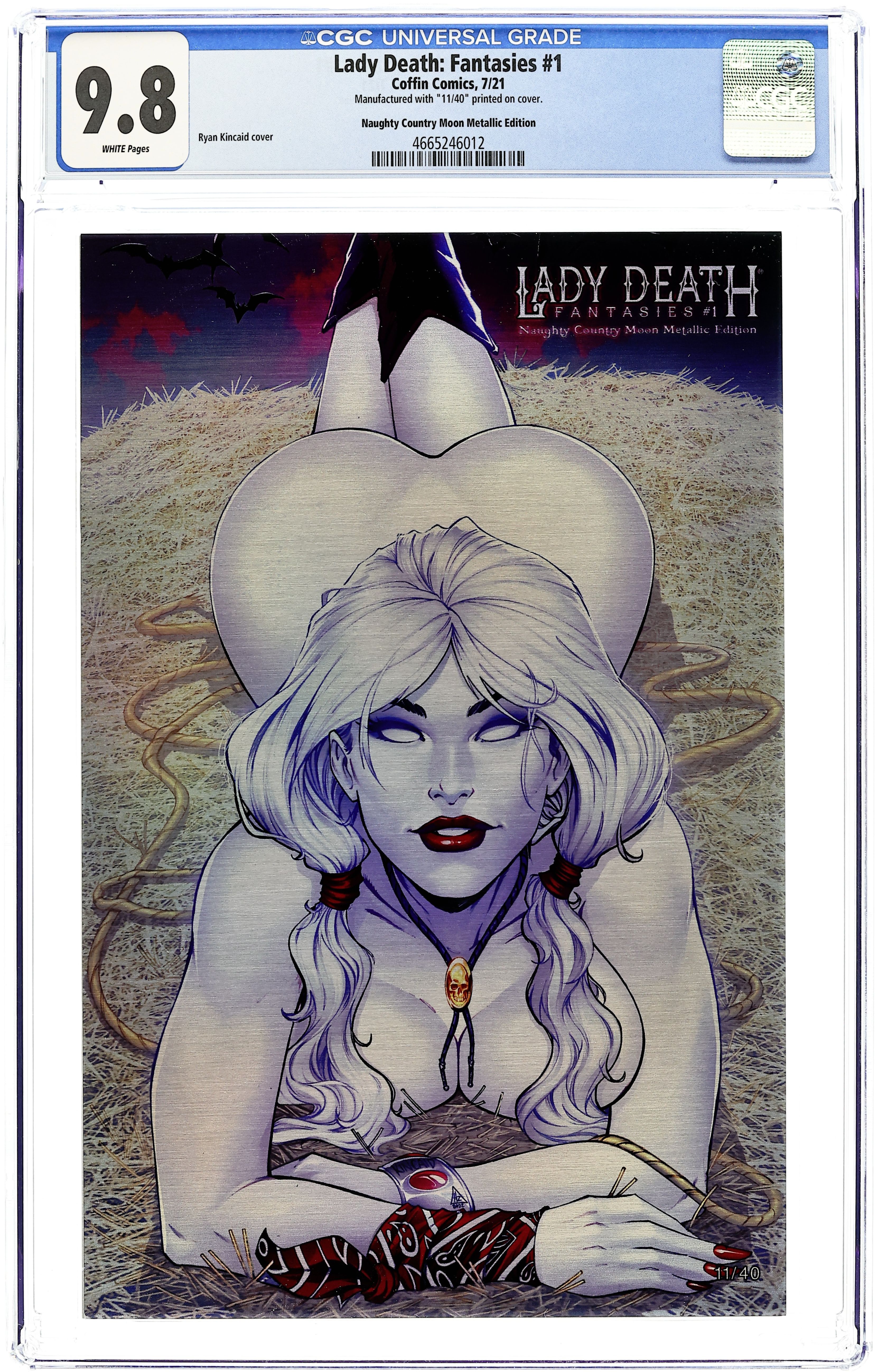 Published Aug 2024 by Coffin Comics.Lady Death Demonic Omens (2024 Coffin Comics) Kickstarter 1NAUGHTY CGC 9.8