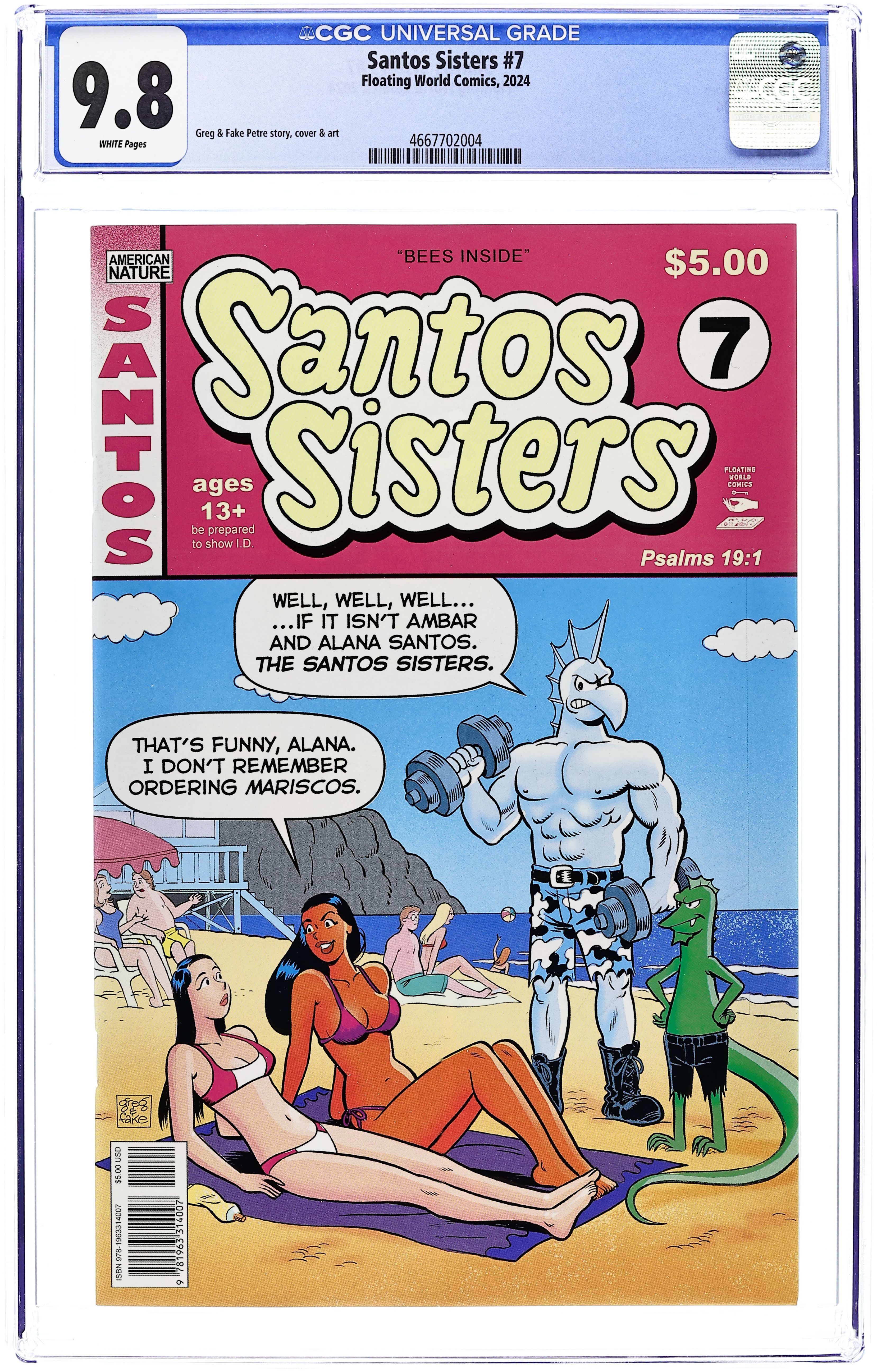 Written by MARC KOPRINAROV, Greg & Fake. Art by GREG & FAK. The Santos sisters face off against the notorious Manzanillo Assassins, whose leader, Blue Agua, has one scaly goal: breeding with Todd! Can Ambar and Alana rescue Todd from this underwater nightmare? Plus, the clock keeps ticking in the 'What Time Is It?' saga. A newsprint-pounding thrill ride you won't forget! 32 pages, full color. Rated T+ Cover price $5.00.