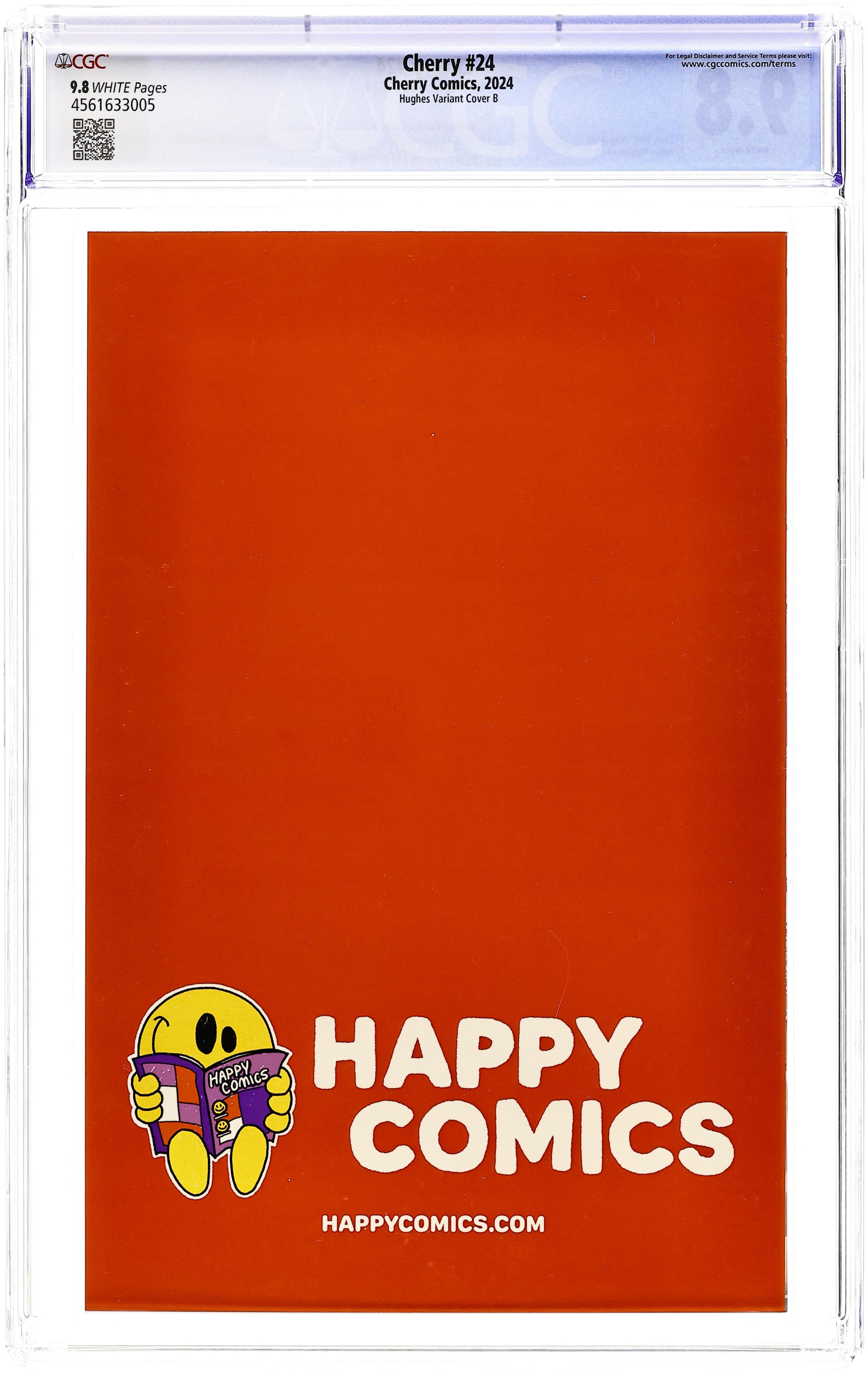 Happy Comics Exclusive Signed Edition Virgin Cover by Adam Hughes - limited to 100 Copies, Signed by cover artist, Adam Hughes. Story and Art by Larry Welz. Cherry #24 is bigger, longer, and harder than ever. It's a 48 page monster that has the next two chapters of the exciting ongoing epic. This issue also features All New Cherry Pin Ups by, Scott Diggs Underwood (Ed Edd n' Eddy, The Addams Family), Joe Pekar (Grimm Fairy Tales), Tuco El Buitre (Mademoiselle De Sade), Robert Ullman (Atom Bomb Bikini), Chance Wolf (Spawn, The Pitt), PHILO (Tales of Shaundra), Aaron Bordner (Alice Sinn, Monster High School) & Steven S. Crompton (Demi The Demoness). With Guest Strips by MastaJWood (Marvel, Dynamite), Shlepzig (Red, File 2231), & Gary Yap (Simpsons, King of the Hill).