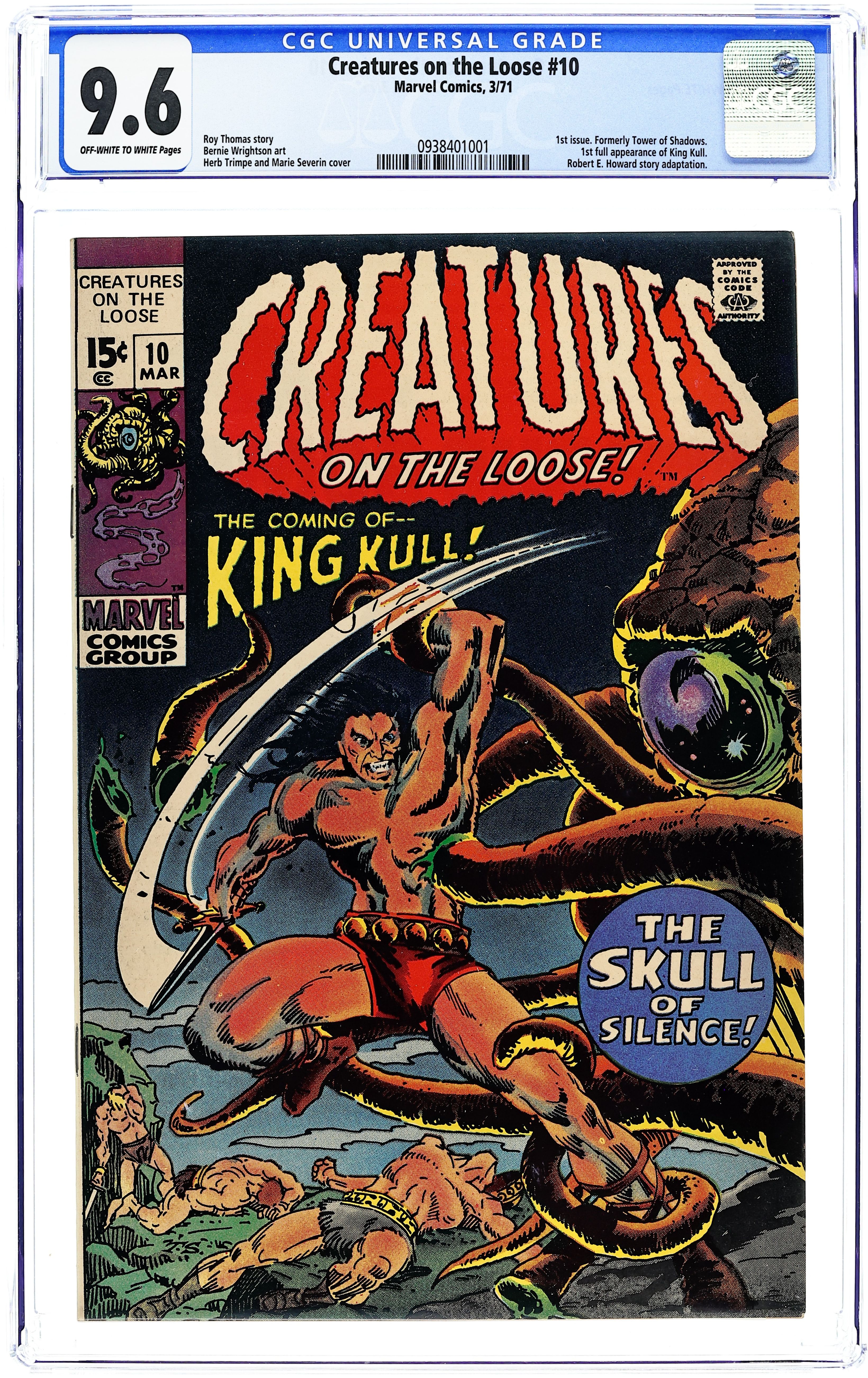 Series formerly "Tower of Shadows." Written by Roy Thomas. Art by by Berni Wrightson (adapted from the Robert E. Howard story). Cover by Marie Severin. New story: first full comic book appearance of King Kull in "The Skull of Silence; Kull's arrogance leads to the release of an ancient menace that he barely is able to defeat. Art by Jack Kirby and Dick Ayers. Reprint"Trull the Unhuman!"; The mental essence of an alien bent on global conquest takes over a steam shovel and is defeated by an elephant. 36 pages, full color. $0.15. Cover price $0.15.