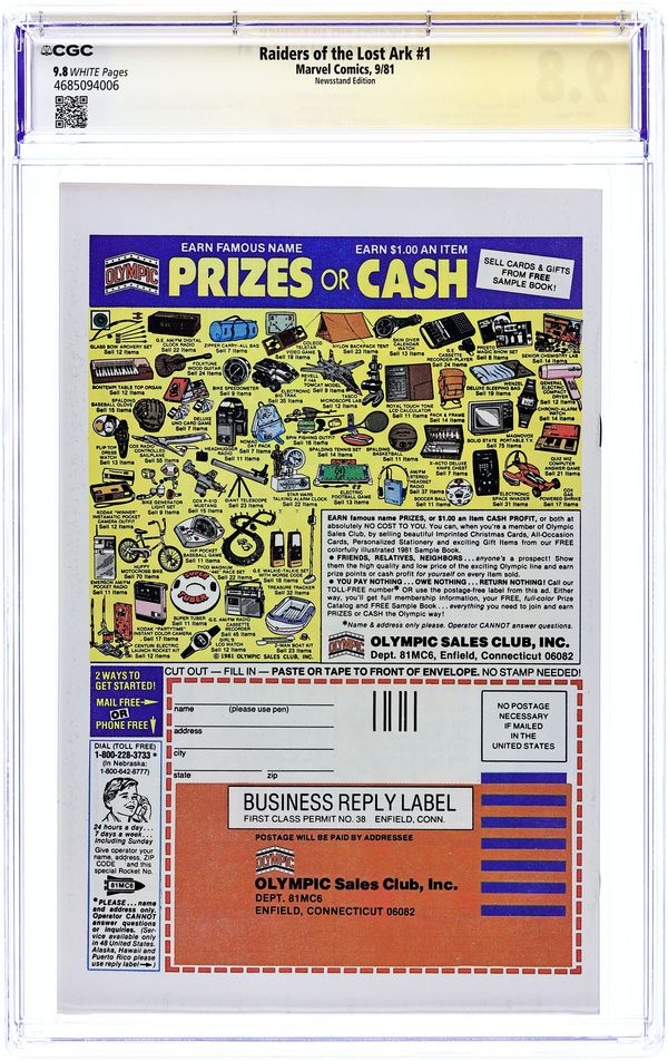 Raiders of the Lost Ark (1981 Marvel) 1N CGC 9.8