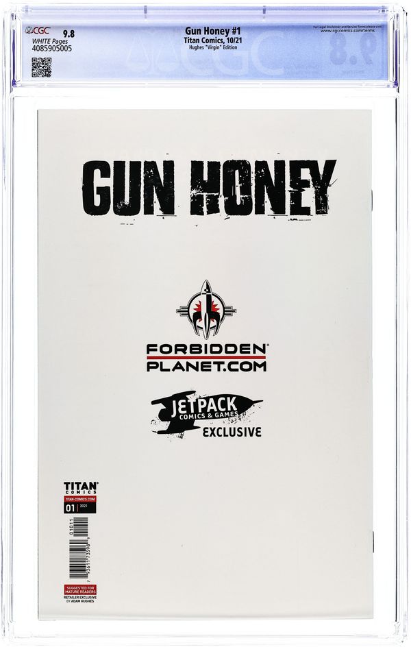 Published Oct 2021 by Titan Comics.Gun Honey (2021 Titan) 1FORBIDDEN.A CGC 9.8 Hughes Forbidden Planet Virgin Variant
