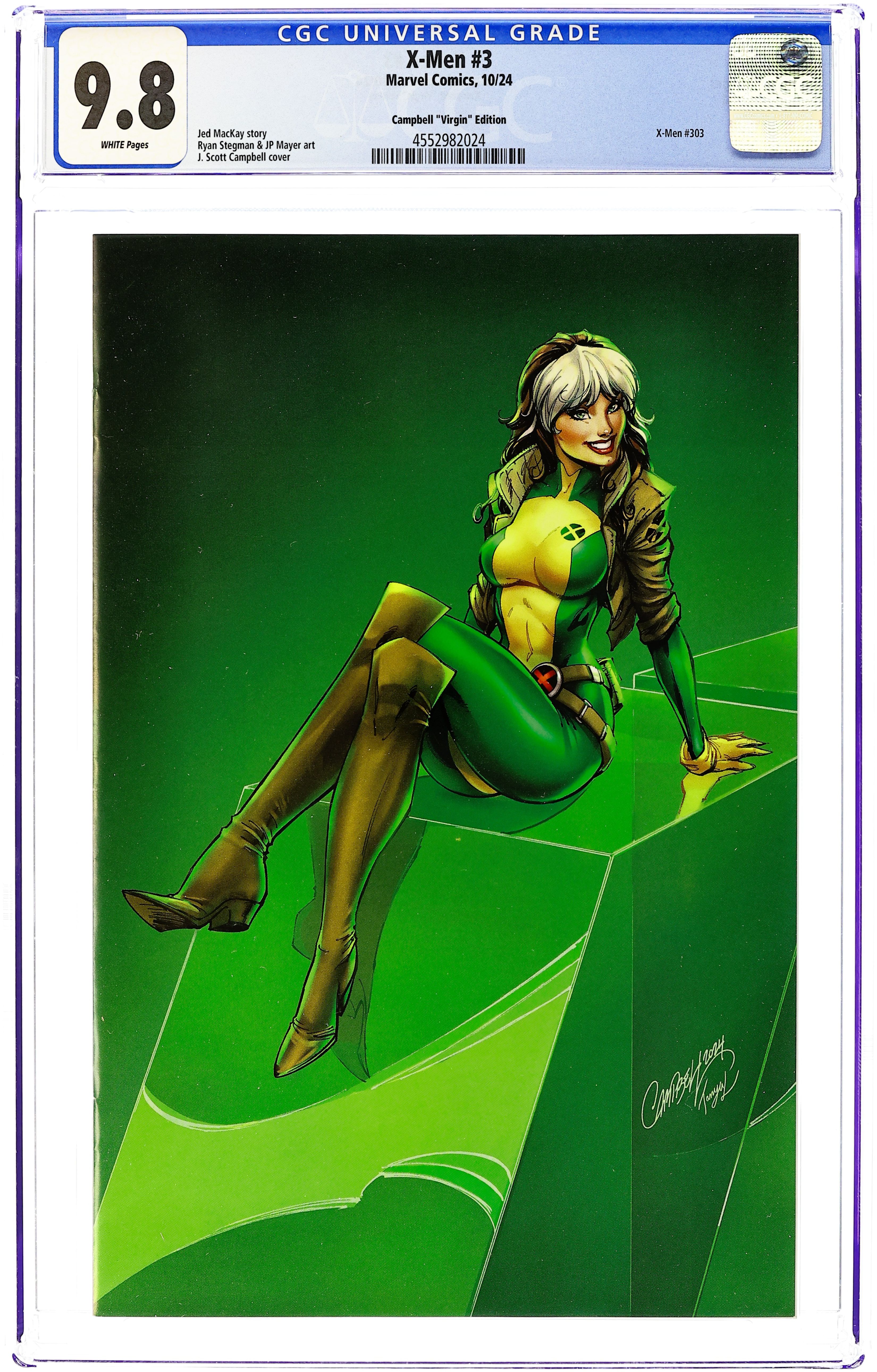 Limited 1 for 100 Retailer Incentive Variant Cover. Written by Jed MacKay. Art by Ryan Stegman. Cover by J Scott Campbell. FROM THE ASHES! Krakoa is gone, ORCHIS has fallen...but the X-Men remain, always. Cyclops leads, because that is what he does. Beast builds, because that is what he does. And from their new home in Alaska, the X-Men raise a flag of defiance. Mutant business is their business. Join CYCLOPS, BEAST, MAGNETO, PSYLOCKE, KID OMEGA, TEMPER, MAGIK and JUGGERNAUT as new forces in the world move into position, battling for the destiny and philosophy of the mutant species. 40 pages, full color. Rated T+ Cover price $5.99.
