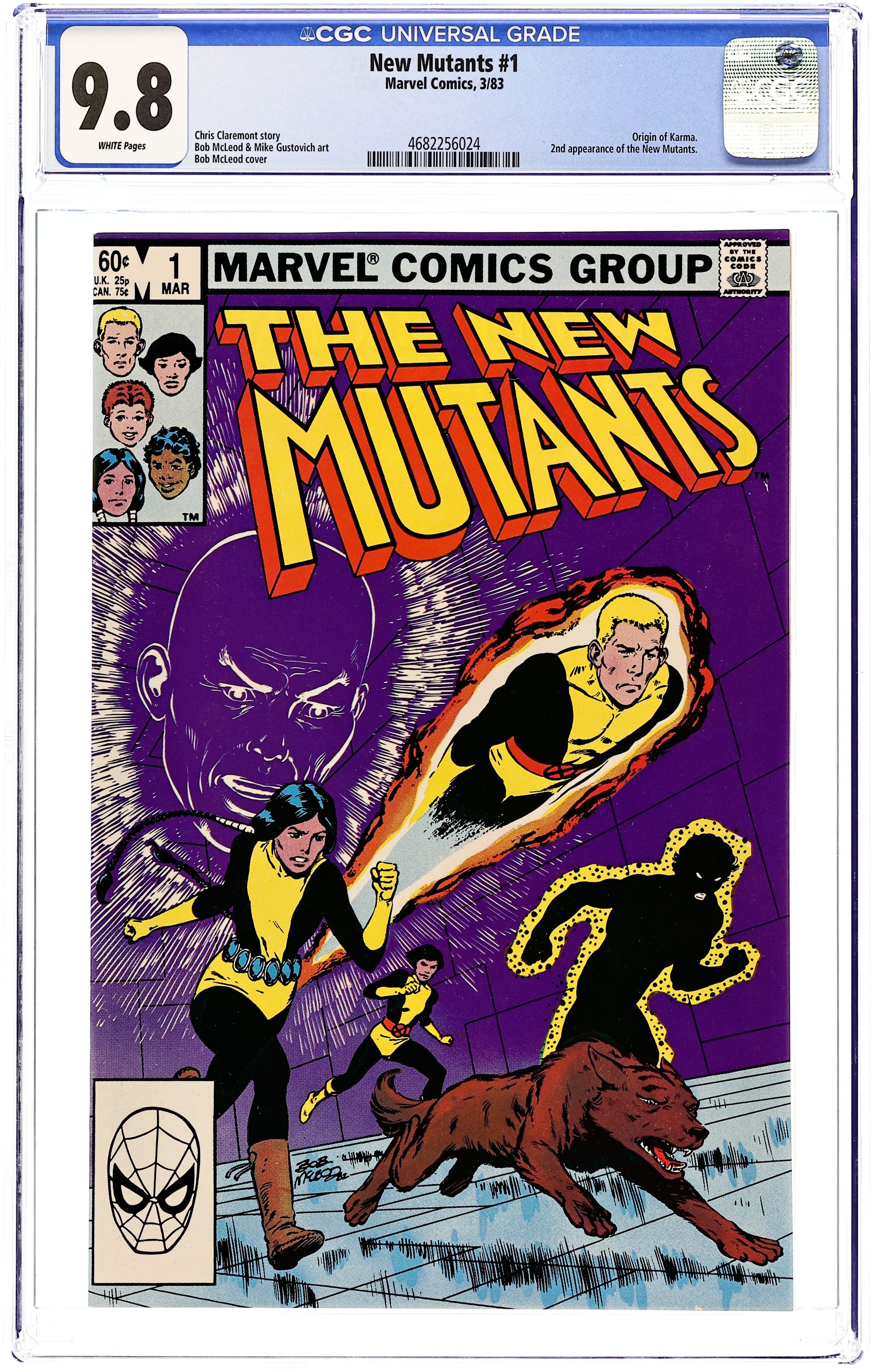 Ends Feb 2 9:06 PM CST Bid History 4 bids Current Bid $21 Your Secret Max Bid If you'd like to bid, please log in or register. Direct Edition. Regular series begins (first appearance is in Marvel Graphic Novel 4). Cover art by Bob McLeod. Initiation!, script by Chris Claremont, pencils by Bob McLeod, inks by Mike Gustovich; The New Mutants get acclimated to their new home, new talents, new friends, and new teachers, unaware that they are being watched; Moira learns that Professor X has a son; and Psyche is attacked in the Danger Room by an unknown assailant; Origin of Karma. Second appearance of the New Mutants (after Marvel Graphic Novel #4). Cover price $0.60.
