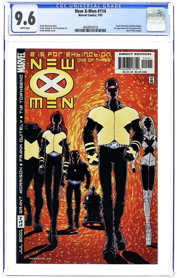 Grant Morrison writer. Cover by Ethan Van Sciver. Art by Keron Grant & Norm Rapmund. In a world without Magneto, will the biggest threat to the X-Men come from... within? Find out when Xavier's dream faces its most unexpected and devastating challenge in the form of Kid Omega! 32 PGS. WITH ADS/FC/MARVEL PG......2.25 Cover price $2.25.