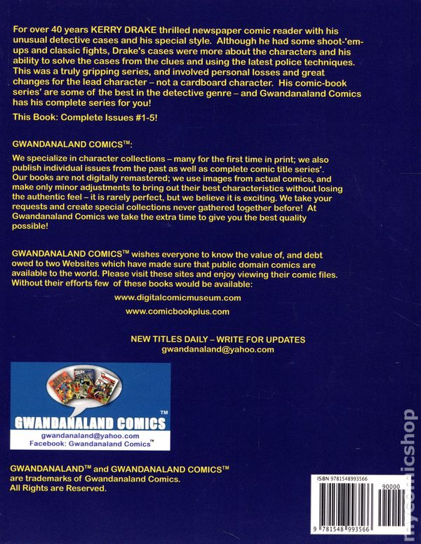Volume 1226 - 1st Printing. "The Complete Kerry Drake Detective!" Collects Kerry Drake Detective Cases (1944) #0, 2-5. These budget friendly reprints of classic western sci-fi, horror, and adventure comics feature some of the best in public domain comic book reprints. Softcover, 8 1/2-in. x 11-in., 304 pages, Full Color.