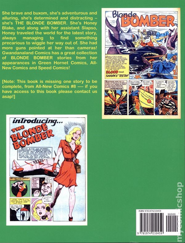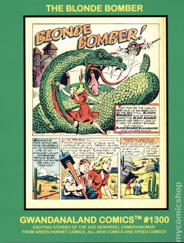 Volume 1300-1st Printing. "The Blonde Bomber!" Collects material from Green Hornet Comics (1940) #7-10, 20-25, 27, 28, and 32-34, All-New Comics (1943) #6, 7, 9, and . These budget friendly reprints of classic western sci-fi, horror, and adventure comics feature some of the best in public domain comic book reprints. Softcover, 8 1/2-in. x 11-in., 150 pages, full color.