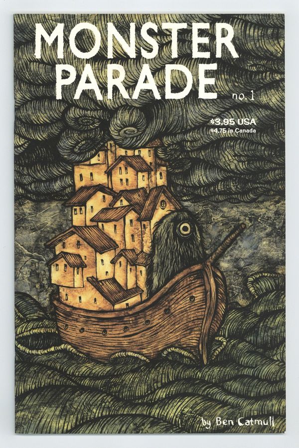 Published Sep 2006 by Fantagraphics.$62.00Stories, Art and Cover by Ben Catmull. Creator Ben Catmull (Paper Theatre) creates a fantastical comic world where all manner of creatures great and small co-exist with humans like a force of nature. In this first issue, a young boy witnesses a series of giant monsters bringing forth a great rain. Later, a crotchety old professor has the limits of his patience and personal safety tested on board a train in "Monster Express." Then, in "Civilization Studies Illustrated," a provincial town deals with a host of insect and bird creatures as well as nightly "bear floods." Rendered in lovely two colors! 32 pages, PC/PB&W. Cover price $3.95.
