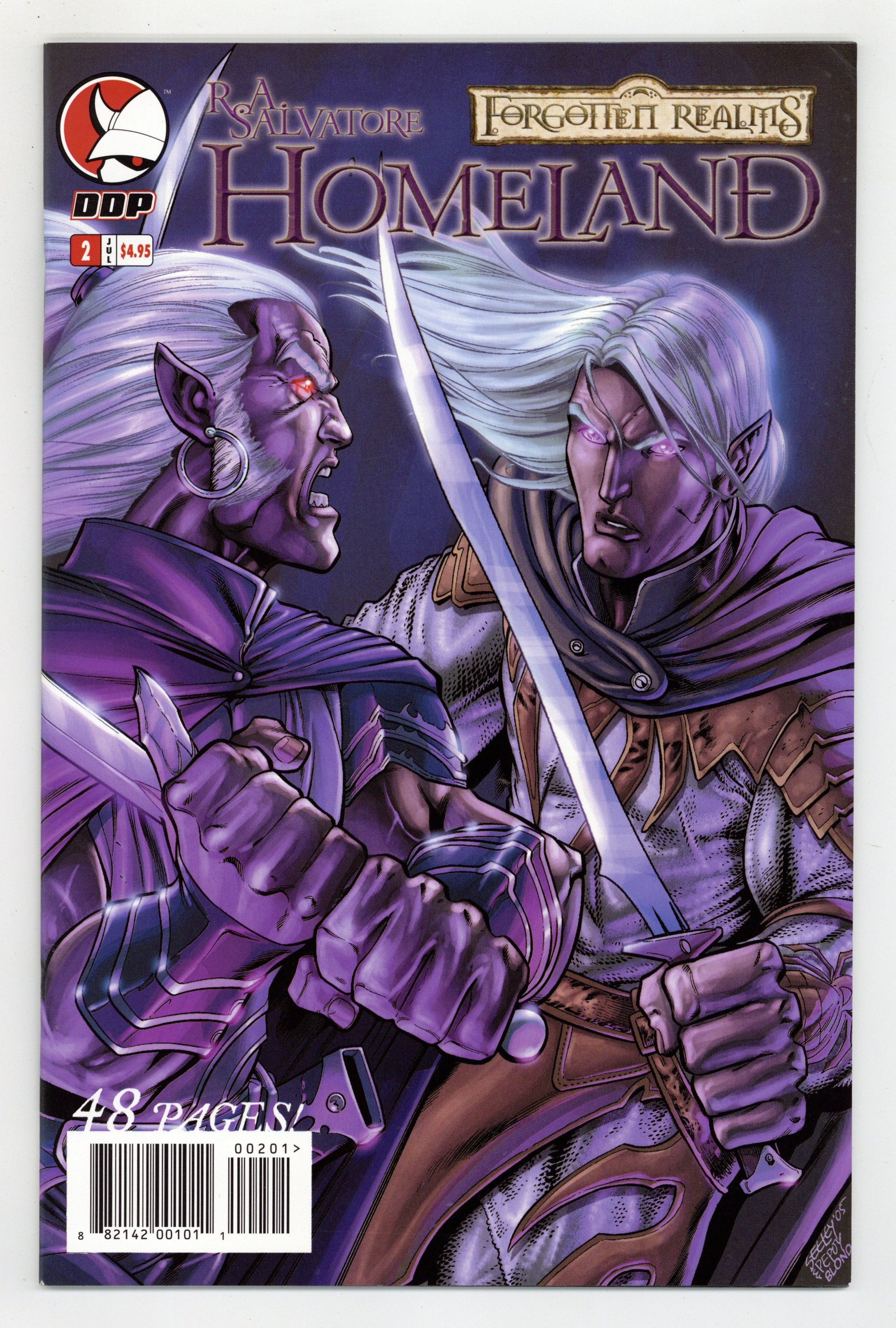 Tim Seeley Cover - Writer: R.A. Salvatore Adapted by: Andrew Dabb Artist: Tim Seeley. Continuing the Adaptation of R. A. Salvatore's "Homeland" ? the first book in the famed Dark Elf Trilogy! Save for his mentor Zaknafein, Drizzt is alone amongst his people in his dedication to justice. But now he has entered Melee-Magthere ? the Academy of Menzoberranzan. Here, young drow warriors are schooled in the art of deadly combat ? and the corrupt ways of their people: Treachery. Ambition. Murder. His choice is simple: bow to the will of his evil family and become twisted by these teachings ? or retain his honor and become an outcast... 32pgs, FC$2.95 Cover price $4.95.