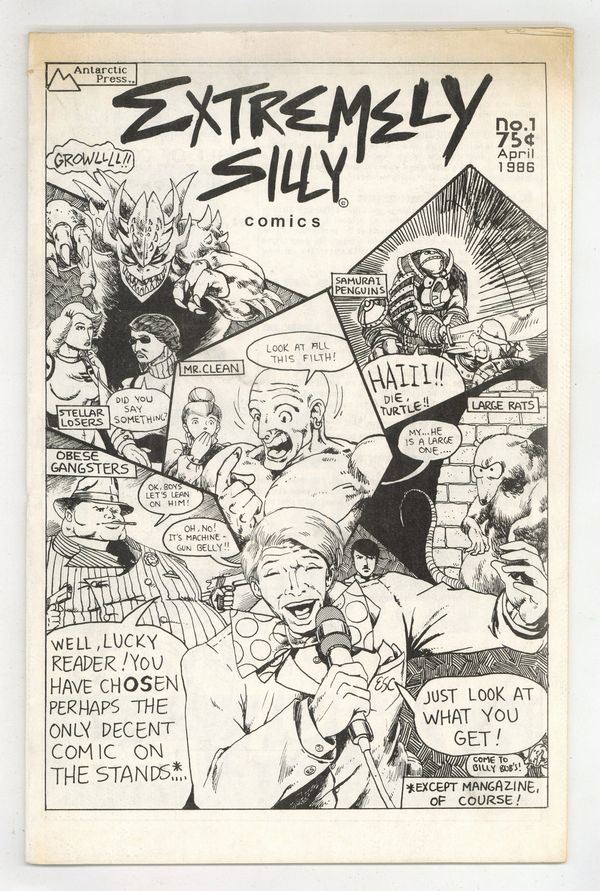 Published Apr 1986 by Antarctic Press.$12.50Stories and art by Ben Dunn and others. A very early anthology from indy comics pioneer Antarctic Press. Featuring the obligatory Teenage Mutant Ninja Turtles spoof (by future Ninja High School creator Ben Dunn), Samurai Penguins (unrelated to the SLG character), as well as Stellar Losers, Machinegun Belly, and other extreme silliness. 32 pages, B&W. Cover price $0.75.